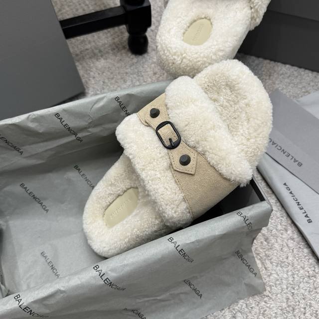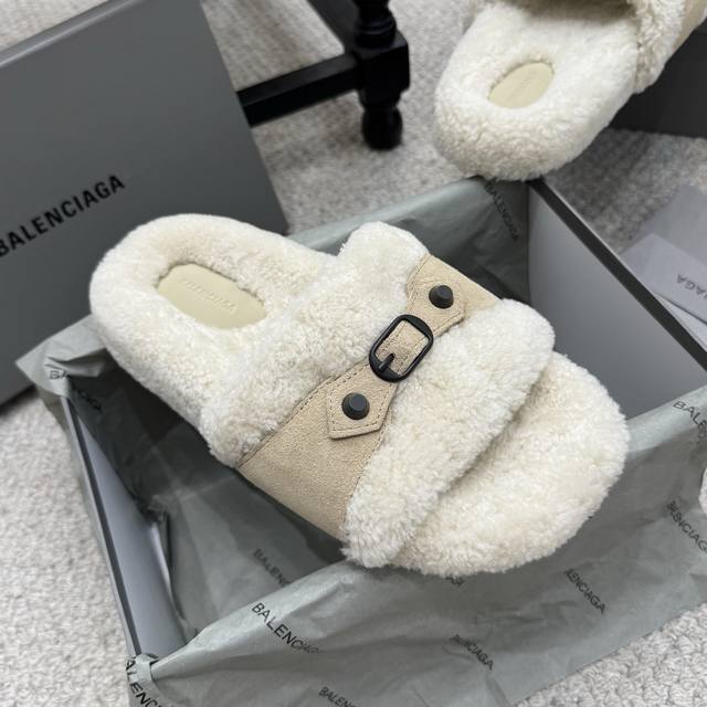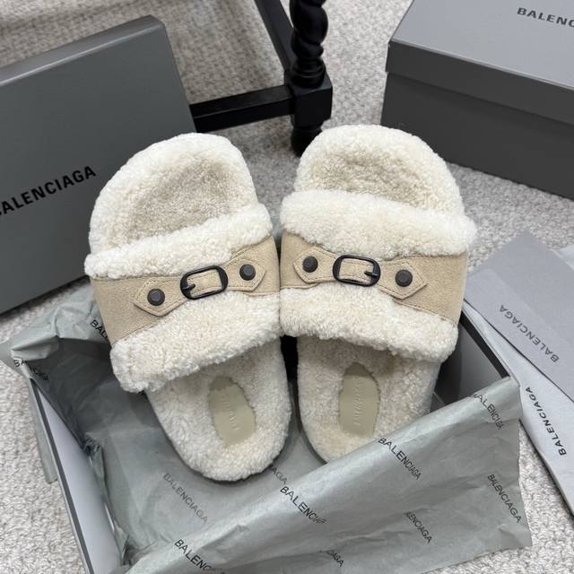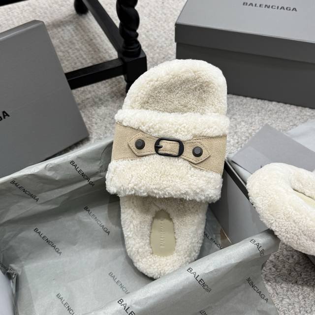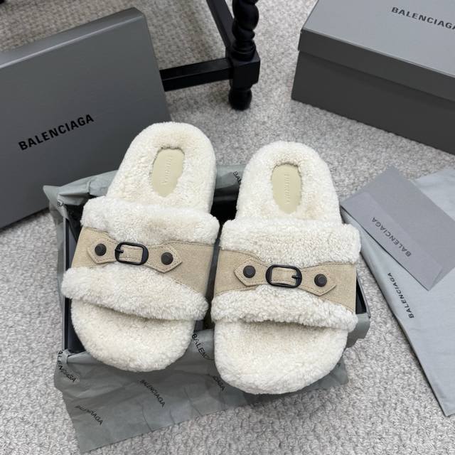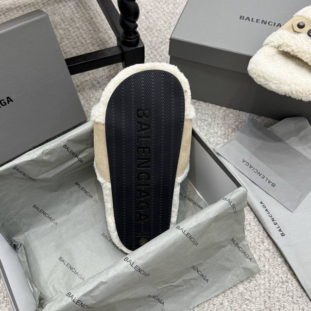 Balenciaga Fall/Winter Trendy Fleece Slippers! Featuring the latest Balenciaga Political Campaign logo embroidery! Exuding luxury! A favorite among European and American socialites, celebrities, and influencers. Exquisite upper with hand-stitched details, fluffy and soft against the skin. A winter essential, stylish yet understated. Material: High-gloss cow suede; Lining: Premium pure wool; Outsole: Natural rubber, non-slip and durable; Sizes: 35-40; Packaging: Matching original packaging from the boutique.