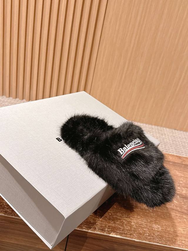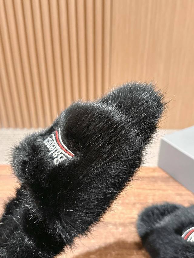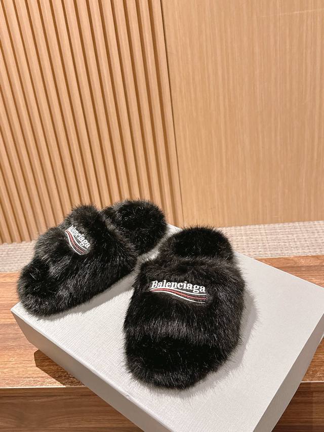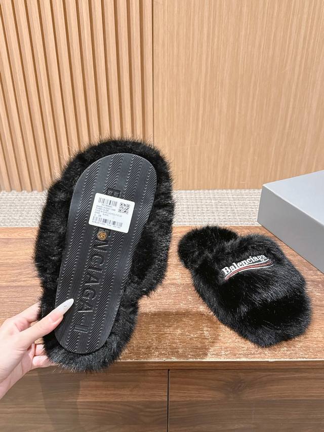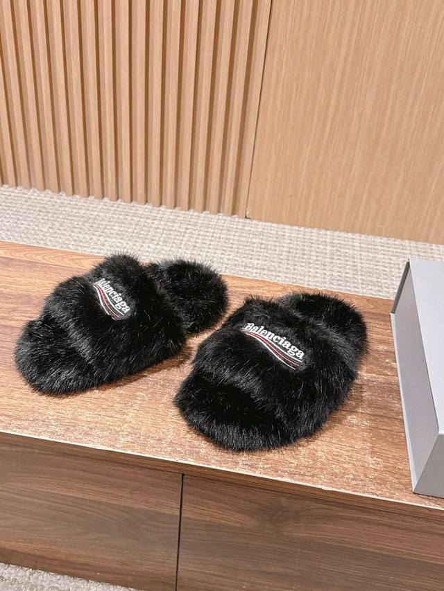 Balenciaga Fall/Winter Trendy Wool Slippers with Embroidered Logo! A favorite among European and American socialites, celebrities, and influencers. Exquisite upper with hand-stitched seams, fluffy and soft against the skin. A winter essential, stylish yet understated. Original natural rubber non-slip and wear-resistant outsole. Sizes: 35-39. 40 (Custom orders, no returns or exchanges).