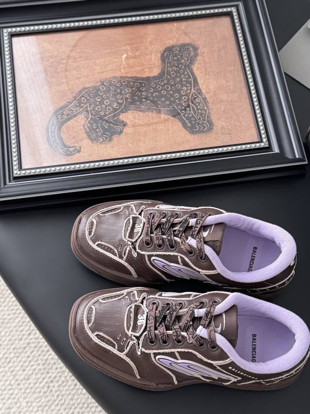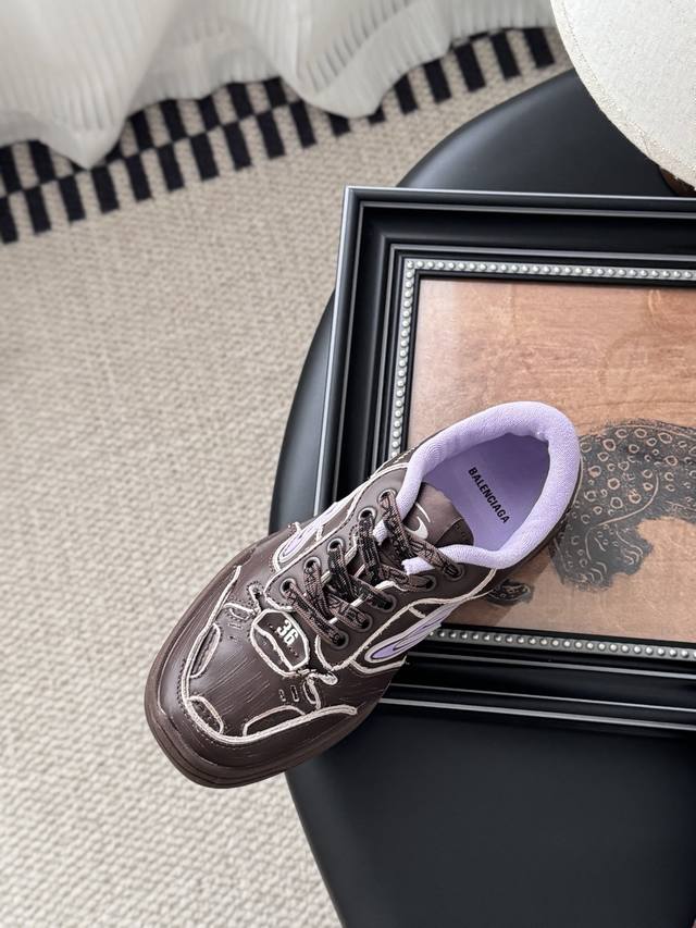 The upper is made of old Japanese car stitching and the shoelaces are damaged with graffiti design. Size: 35-44