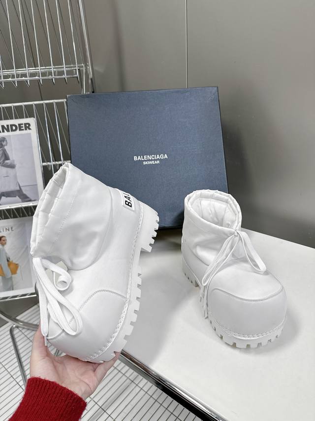 Balenciaga Skiwear latest couple Alaskan snow boots, authentic, purchased for RMB 12. A perfect replica developed by the designer, exploring the fashion world's concepts of originality and appropriation. This new collection pays homage to heritage and classics, breaking away from conventional designs with iconic Balenciaga abstraction to create a whimsical yet harmonious new creative style. Made to a 1:1 replica, all materials are custom-made space fabric, double-layered upper, exclusive molded outsole, authentic complete packaging. Sizes: Women's 35-40, Men's 39-46. (DDD)