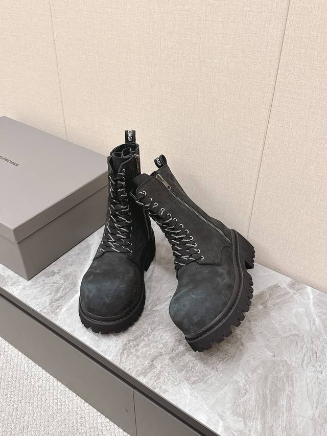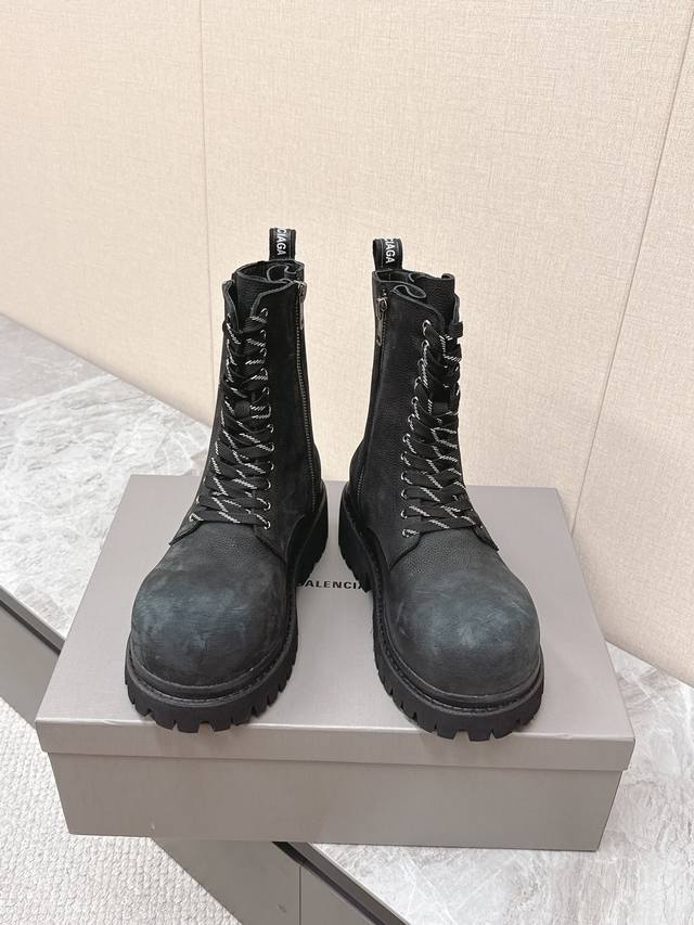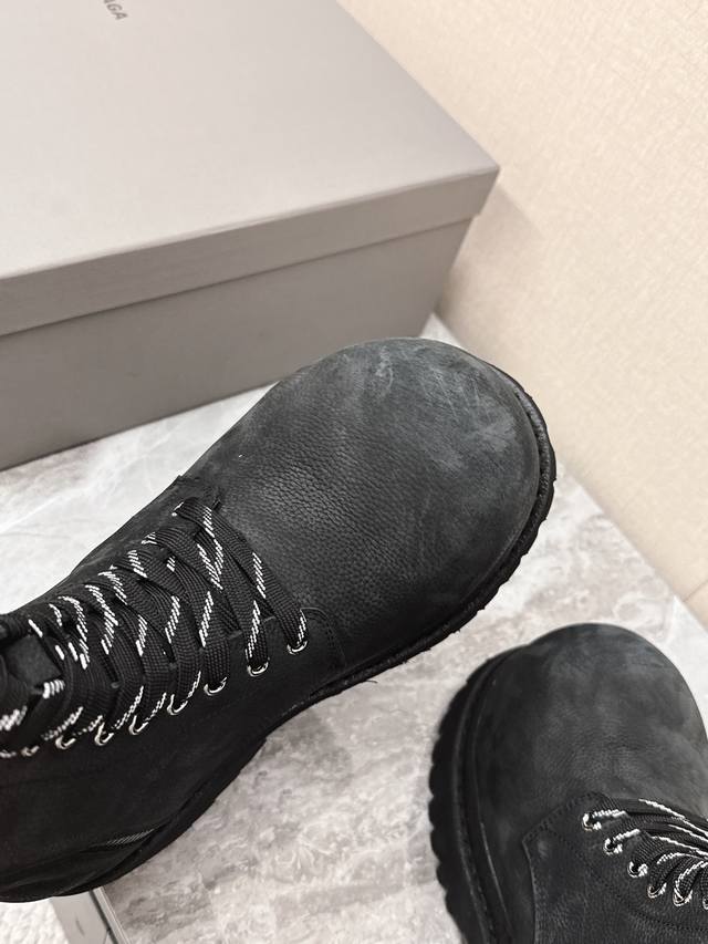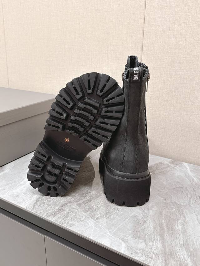 Balenciaga Spring/Summer Runway Couple's Oversized Leather Shoes. Balenciaga has always led the trend of oversized shoes and boots: the Strike military boots with distressed canvas uppers have become a must-have item for many fashion KOLs; the Mickey Derby, though a torture device, is a fashion obsession; heavy ski boots that should be seen on the snow have been paired with various loose camouflage cargo pants. So when this pair came out, everyone was surprised but not quite beyond expectations, because the upper and sole of these Stomper Boots are basically the same as the Strike military boots. The toe part uses leather to recreate the exaggerated upturned toe of the Mickey Derby, which greatly improves the quality of the shoes while also making them practical. It's not too exaggerated like a bulldozer. It is precisely because of these features that these boots are destined to cause another wave of popularity. Original rubber foam combination sole, height 7.5Cm, size: 35-40 Male 39-45 DDD