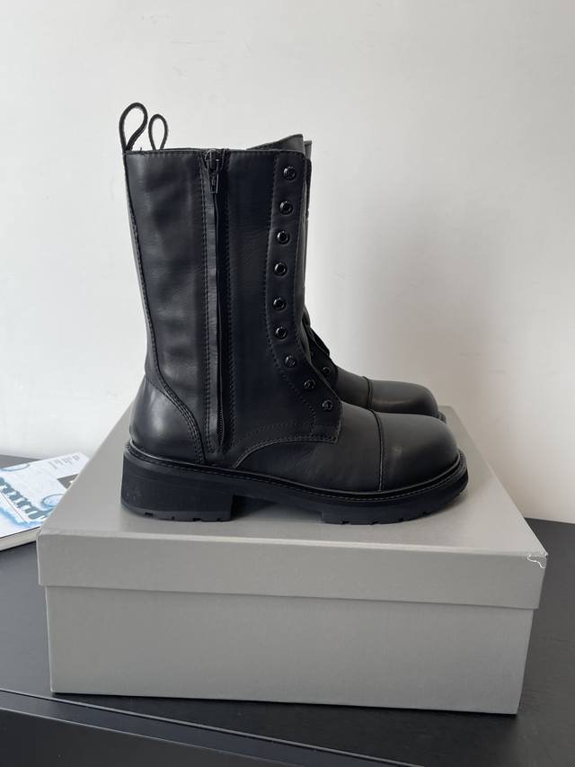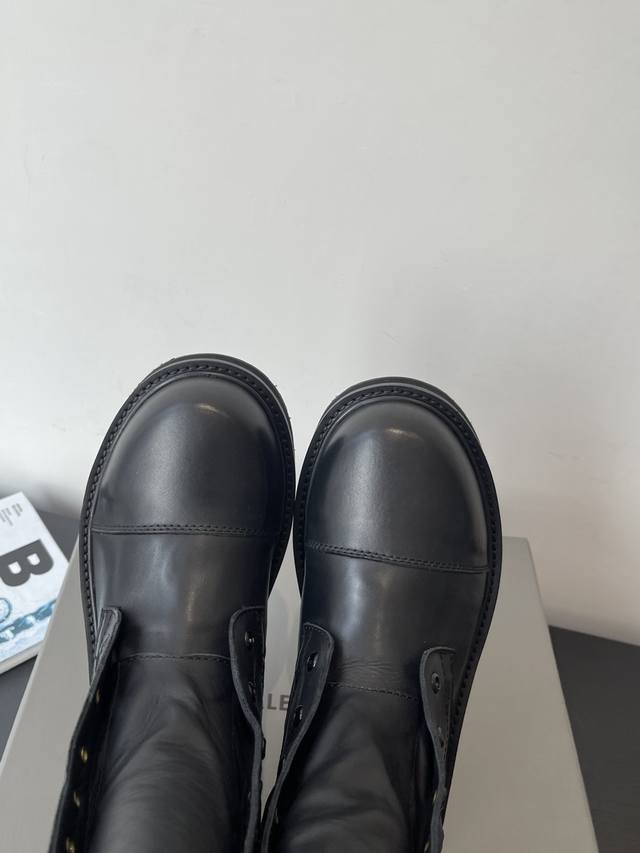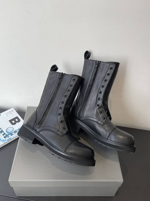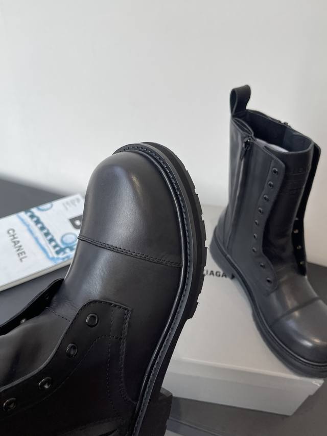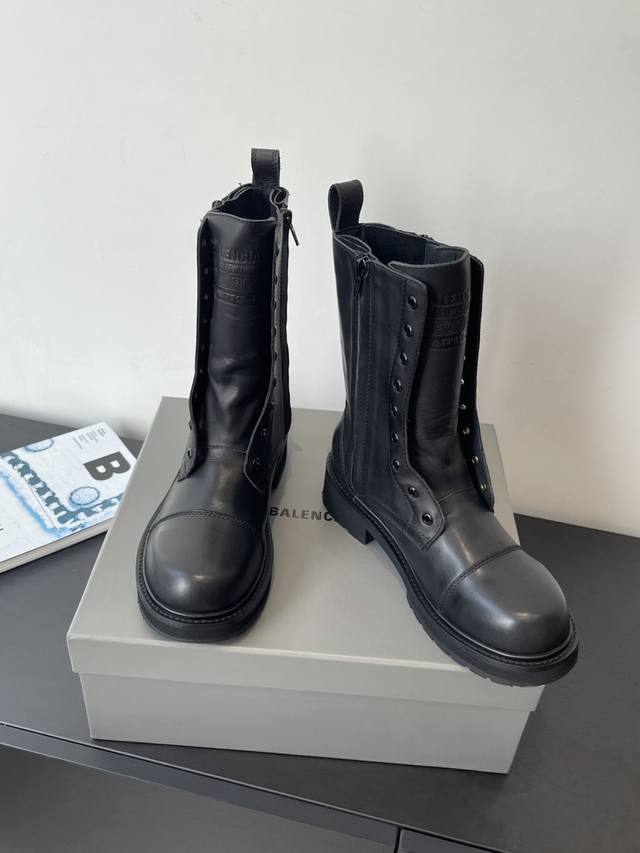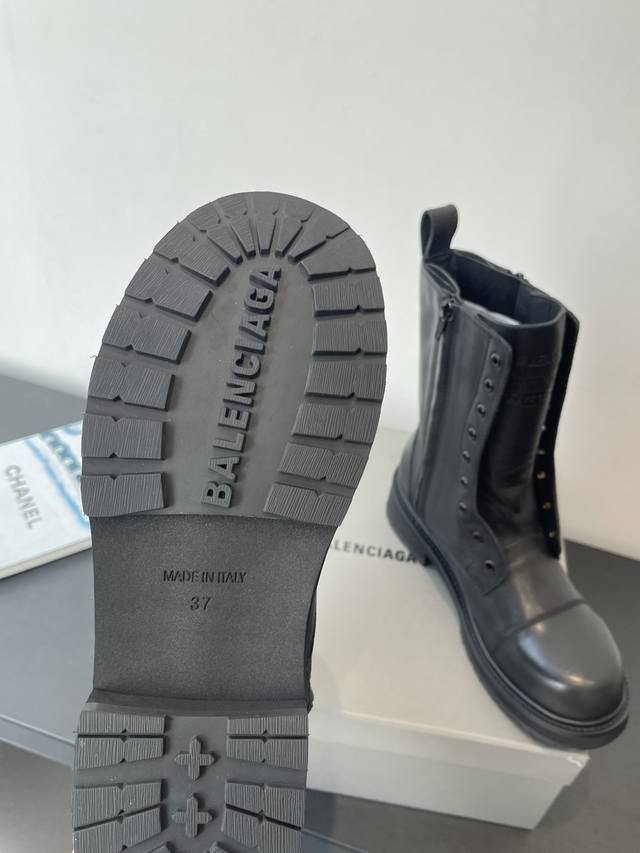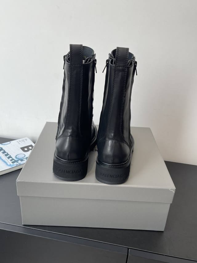 Balenciaga Strike Women's Ankle Boots, New Arrival 25. These boots boast superior quality with a subtle yet luxurious sheen, offering exceptional comfort and style. Whether paired with skinny jeans for a cool street look or a unique skirt for a striking contrast, they effortlessly command attention and perfectly embody a fashionable attitude. Made with original tree-plaster cowhide leather, silk lining, and original molded outsole. Sizes: 35-40, 40 custom-made.