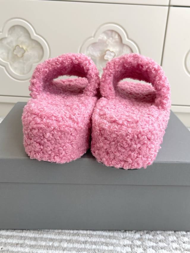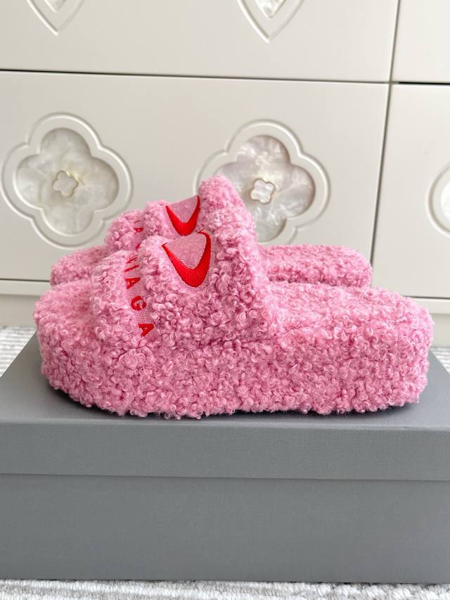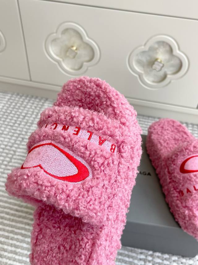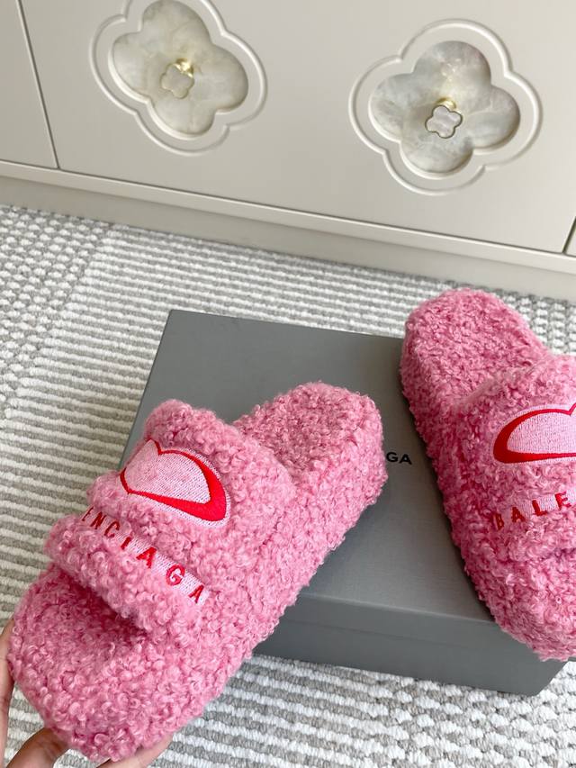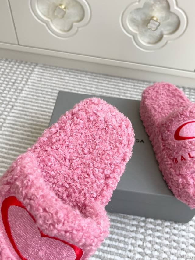 Batch of thin-soled and thick-soled Balenciaga couples' 25Ss autumn and winter trendy heart-shaped thick-soled furry slippers