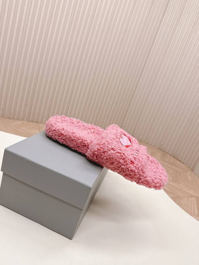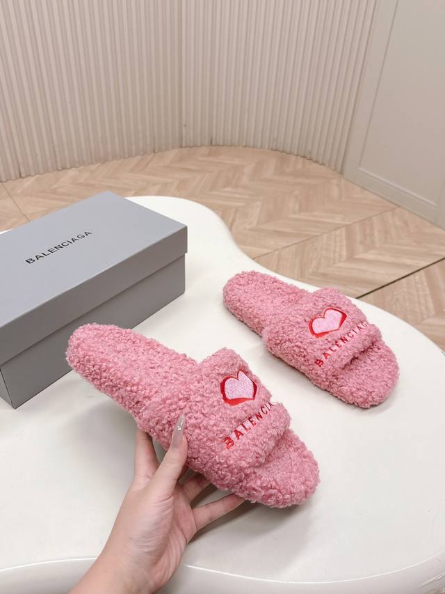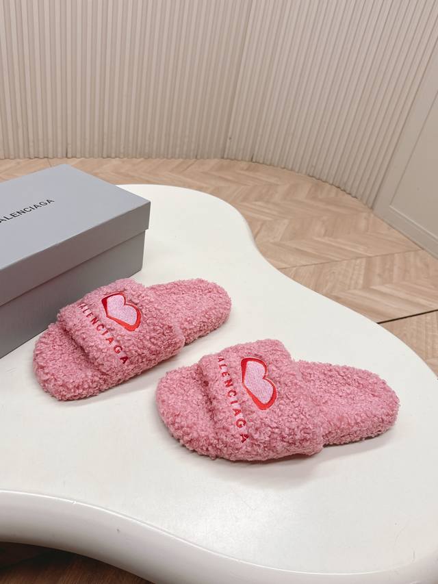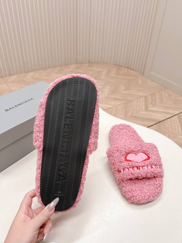 Thick-soled Balenciaga 25Ss autumn and winter wool slippers . The upper feature