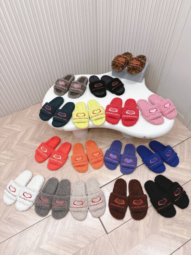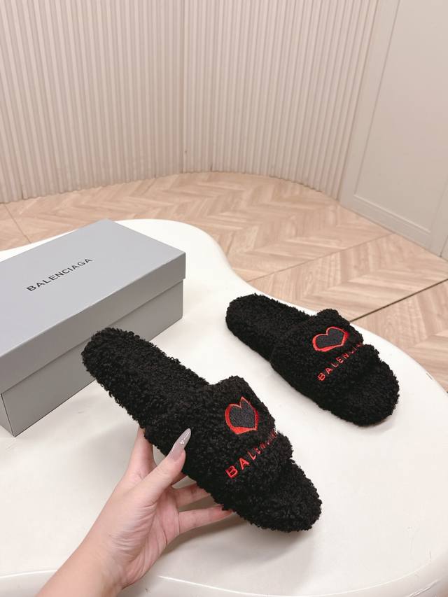 Factory price p Balenciag* new thick-soled fur slippers lengthen the leg lines