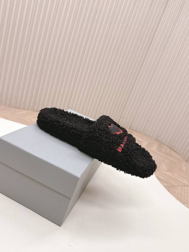 Balenciaga 25Ss Fall/Winter New Thick-Soled Mule Furry Slippers Lightweight and