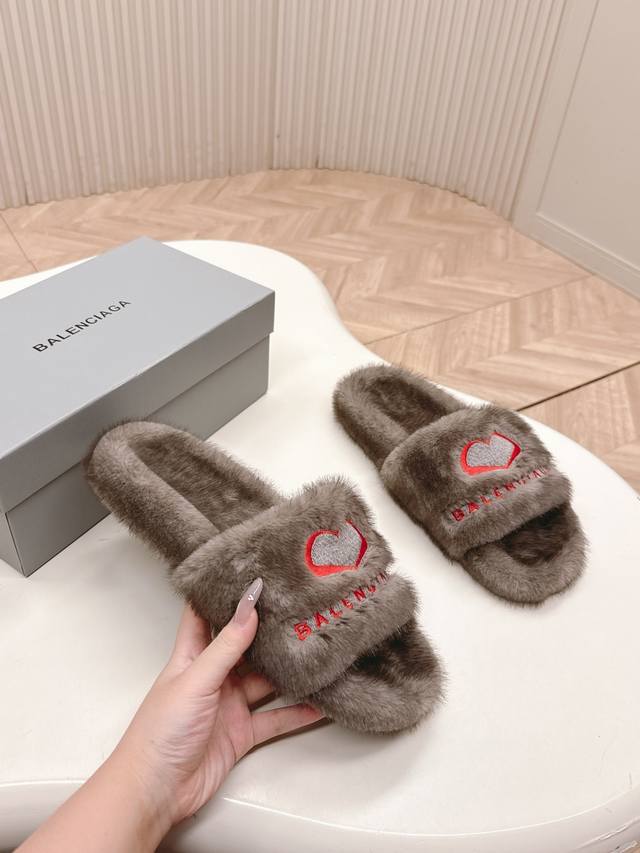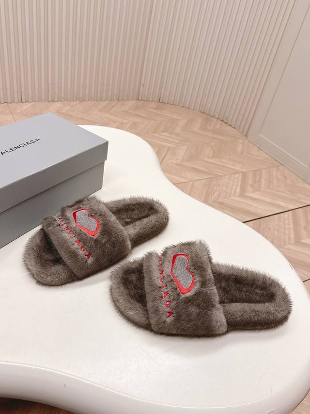 Retail-grade Balenciaga 25 Early Autumn Latest Hot-Selling Fleece Slippers Origi