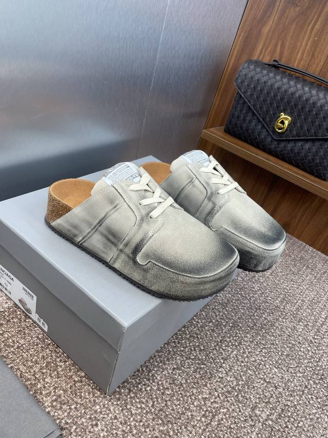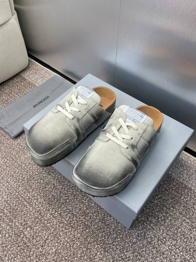 Balenciaga X Birkenstock joint collaboration 2025 autumn and winter new Boston couple's Birkenstock shoes Balenciaga letter logo thick-soled lace-up mule slippers
