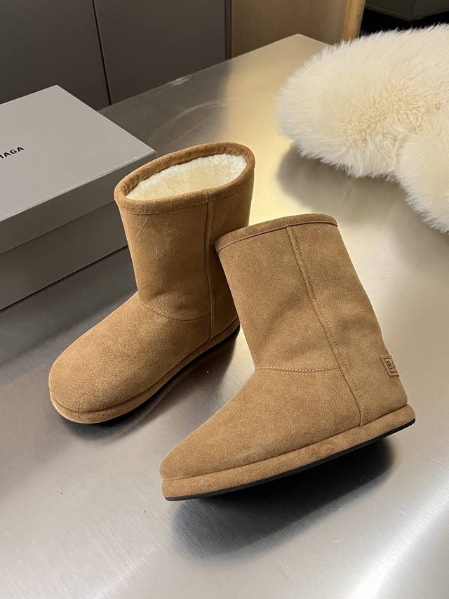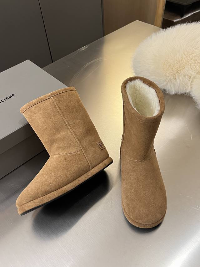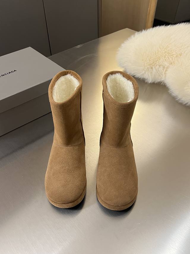 Factory Price: Balenciaga 2025 Fall/Winter New Mid-Calf Pure Wool Platform Snow Boots are incredibly stylish! The design breaks away from the traditional dullness and bulkiness of snow boots, making them full of personality. They look amazing with sweatpants, jeans, or skinny jeans in autumn and winter. The upper is made of silky suede, exuding a delicate and high-end feel. The lining is made of pure wool for warmth and comfort. The rubber outsole is non-slip and wear-resistant. Colors: Chestnut, Black, White, Brown. Size: 35-40. Factory direct supply.