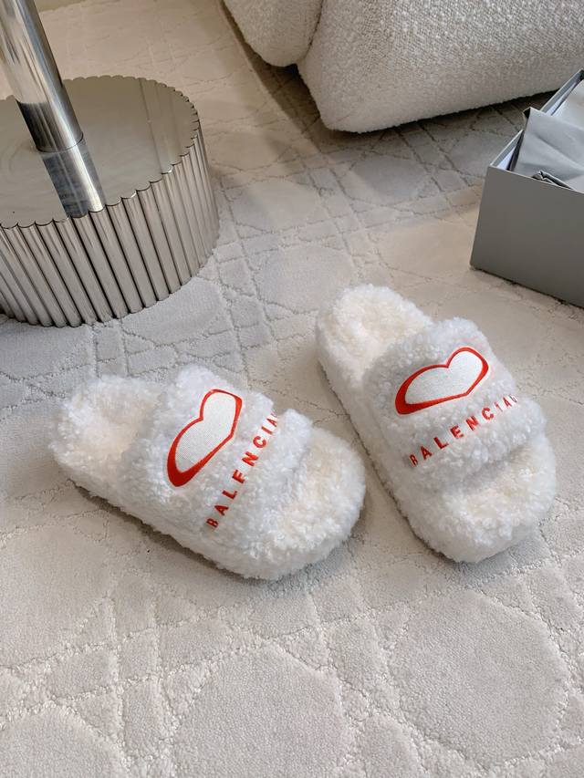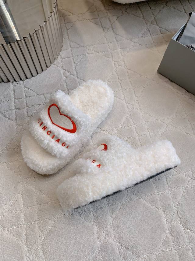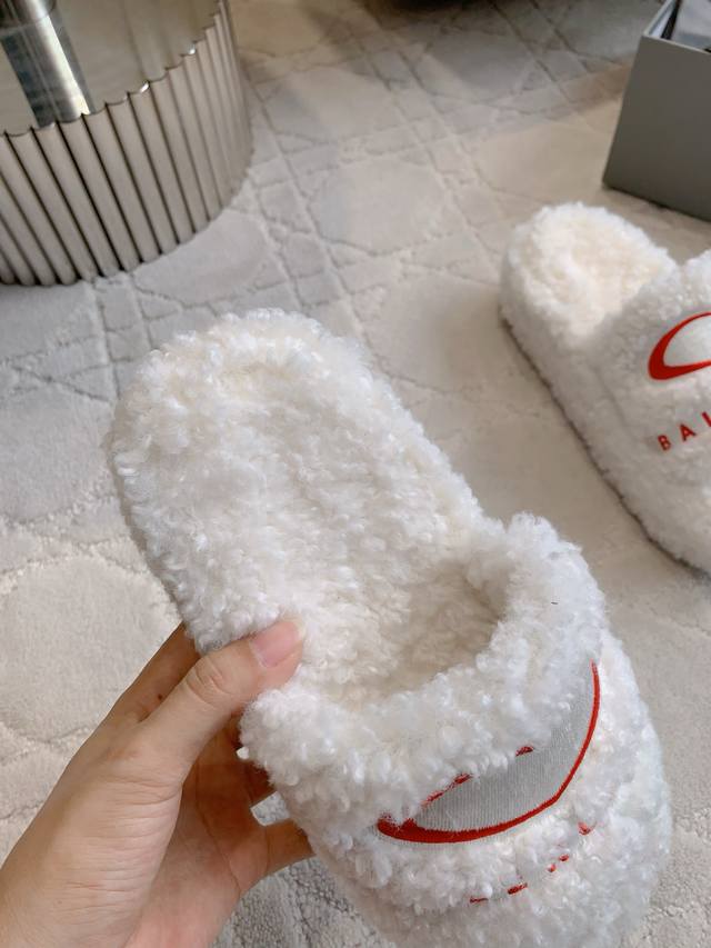 Balenciag* new thick-soled fur slippers lengthen the leg lines as if walking on clouds. Super comfortable and classic all-match style