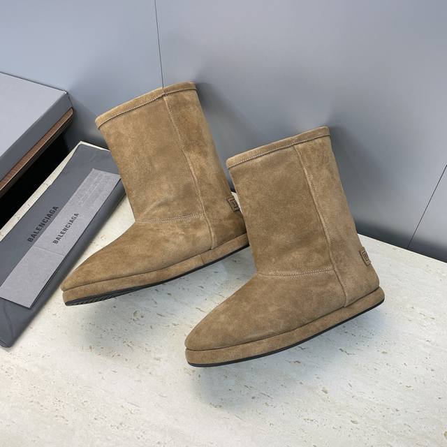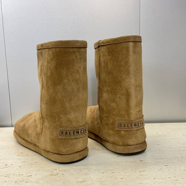 Balenciaga 2025 Autumn/Winter New Style Warm Sheepskin Women's Boots Balenciaga Celebrity Style Letter Logo Thick Sole Round Toe Slip-on Snow Boots