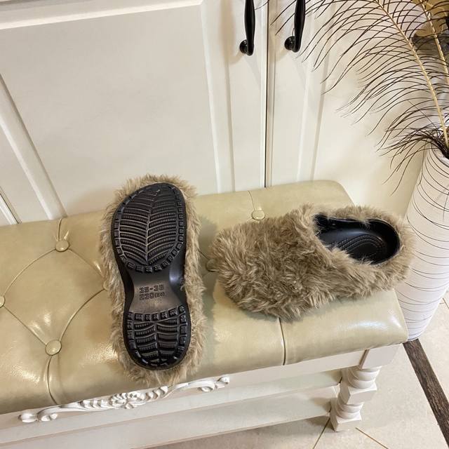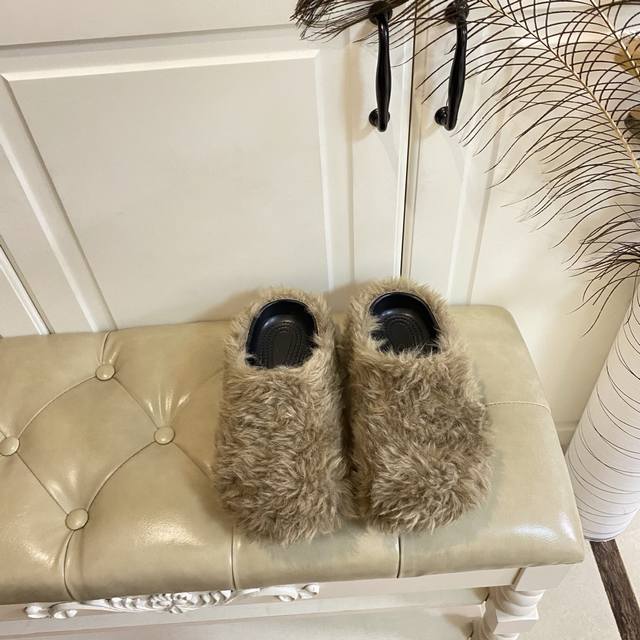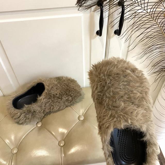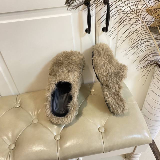 Exclusive Real Shot High-Version Balenciaga 26Ss Autumn/Winter Trendy Fur Slippe