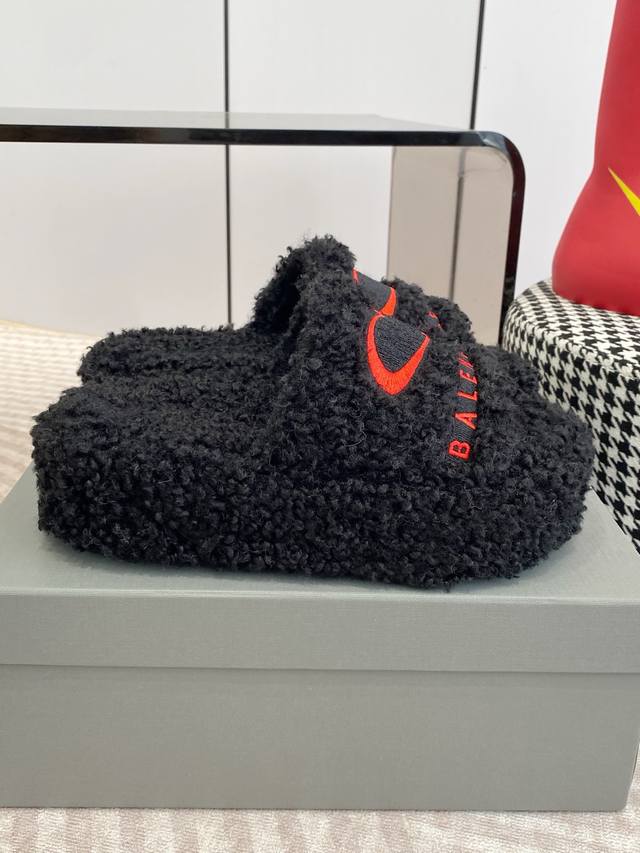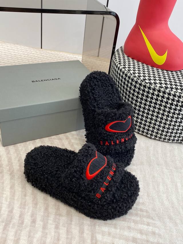 Factory-exited, thick-soled, premium version. Balenciaga 25Ss autumn/winter trendy wool slippers. Embroidered lettering and logo on the upper for a luxurious feel! Looks stunning on the feet. Fabric: Soft and comfortable sheep wool. Sole: Original, non-slip, wear-resistant sole. Sole thickness: 2cm - 5cm. Sizes: #34-41 (Women's sizes 34, 40, 41). Custom sizes are non-refundable.