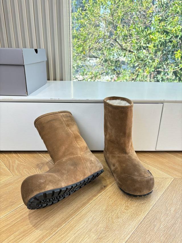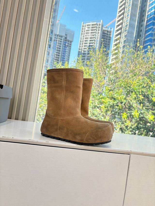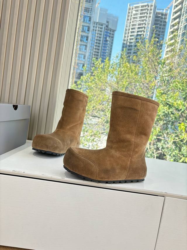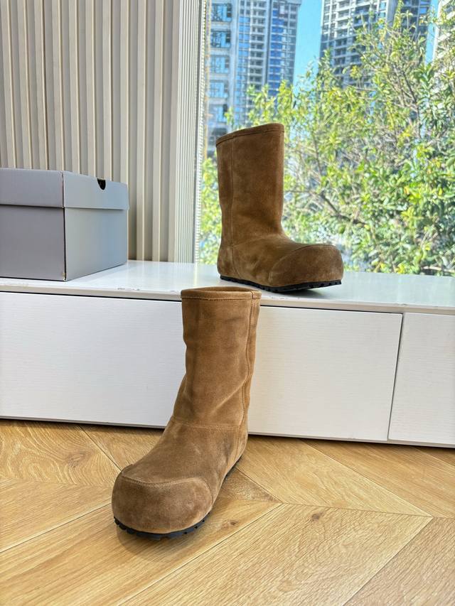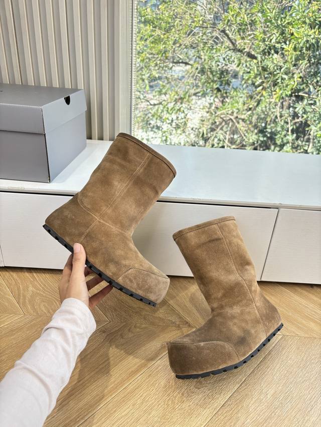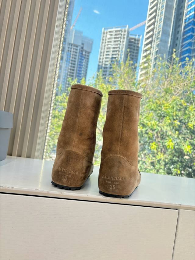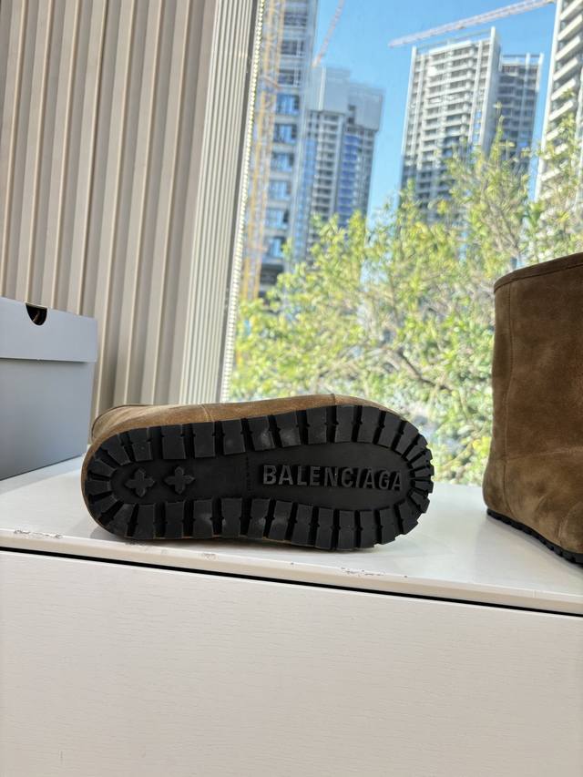 G027 Mid-calf Balenciaga 25Fw snow boots/insulated shoes Venom (high-quality replica) This boot features a unique design with laces and leather straps that not only securely fit the foot but also allow for adjustable tightness. The brand's signature distressed hardware is present throughout, subtly creating a vintage, worn effect that showcases individuality. The thick, serrated rubber sole ensures comfort while enhancing the overall style and brand recognition. The Venom high-calf boots are undoubtedly a must-have fashion item this season, adding a unique charm to fashion enthusiasts' outfits and leading a new wave of trendsetting style. Boot height: [DDD] Upper: Top-grain cowhide suede [DDD] Lining: Imported wool [DDD] Sizes: 35-40 Size 40 (custom orders, no returns or exchanges) [DDD]