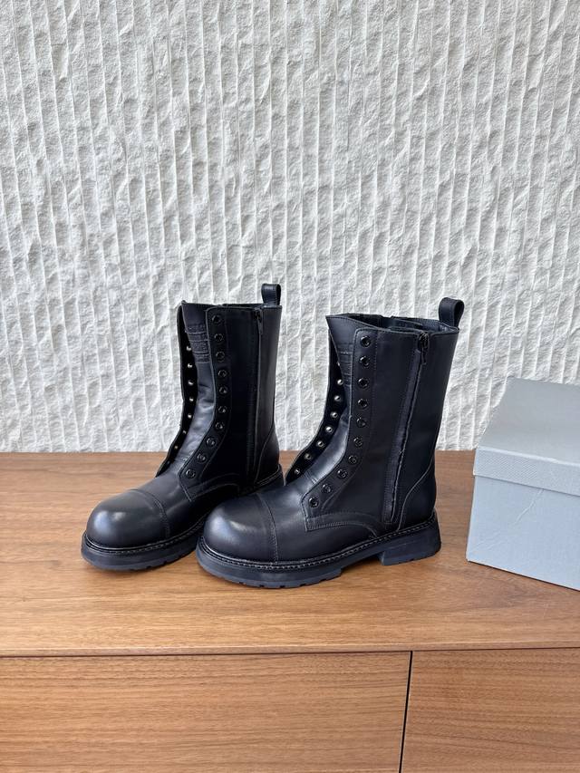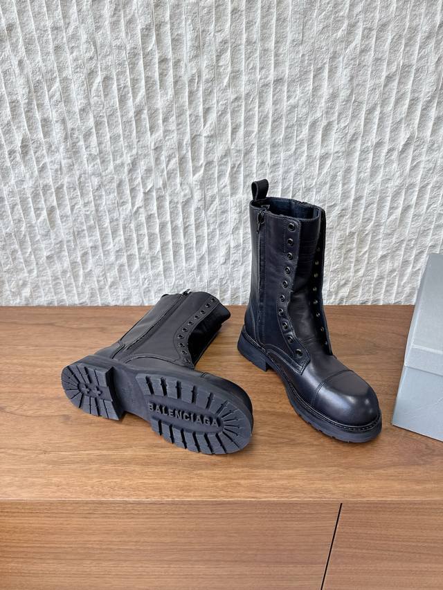 G259 Men's Size +10 Balenciaga 25Ss Autumn/Winter New Style Faux Lace-up Couple Martin Boots