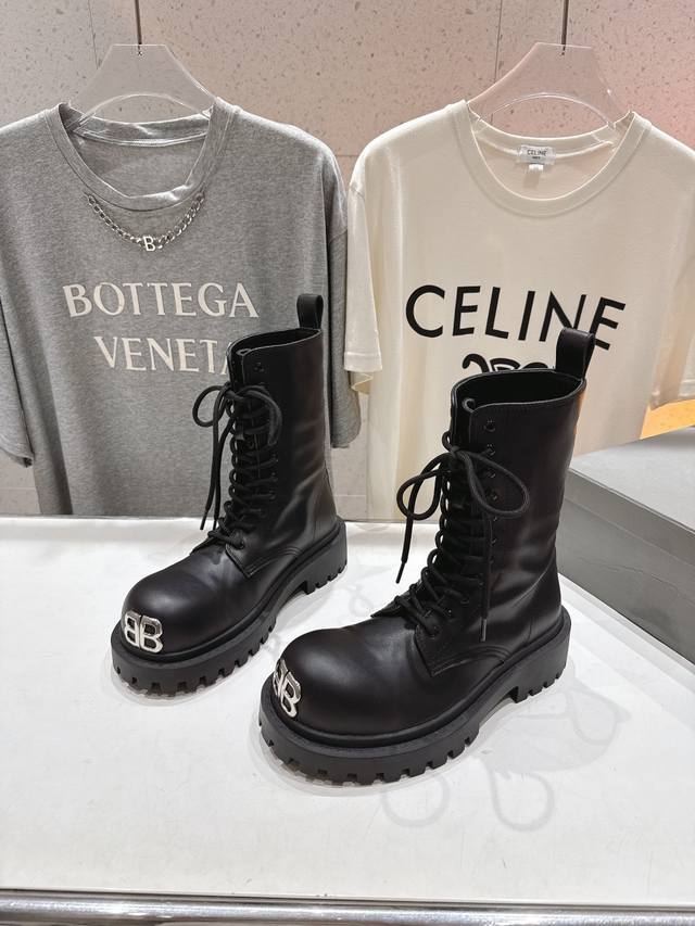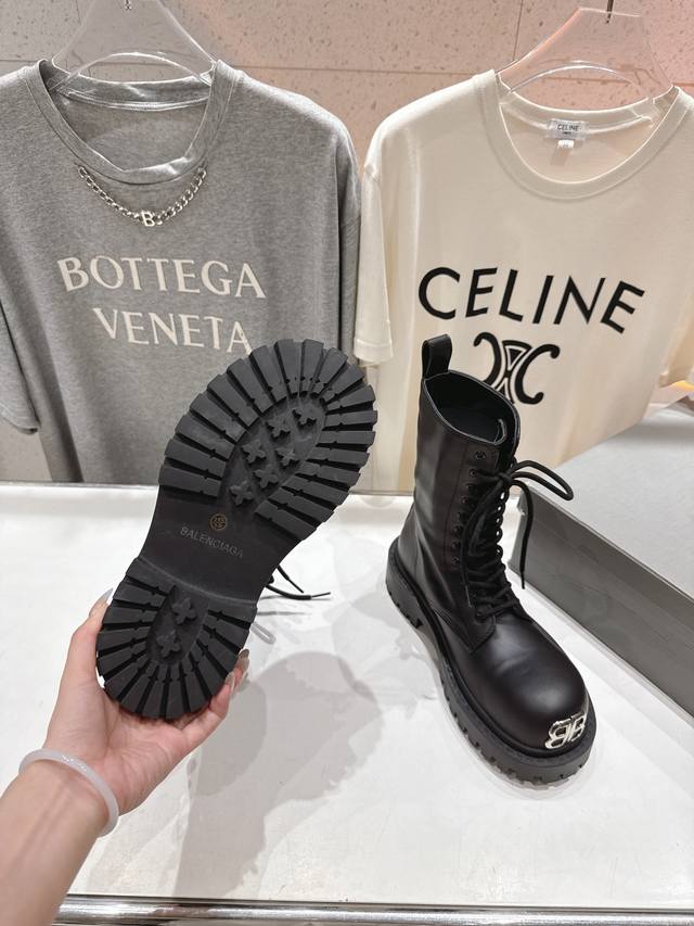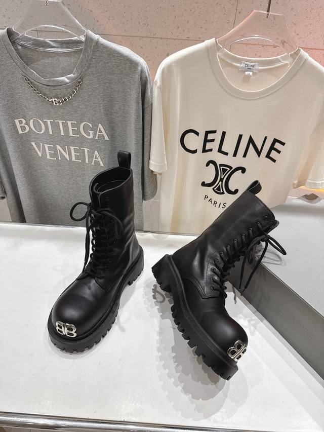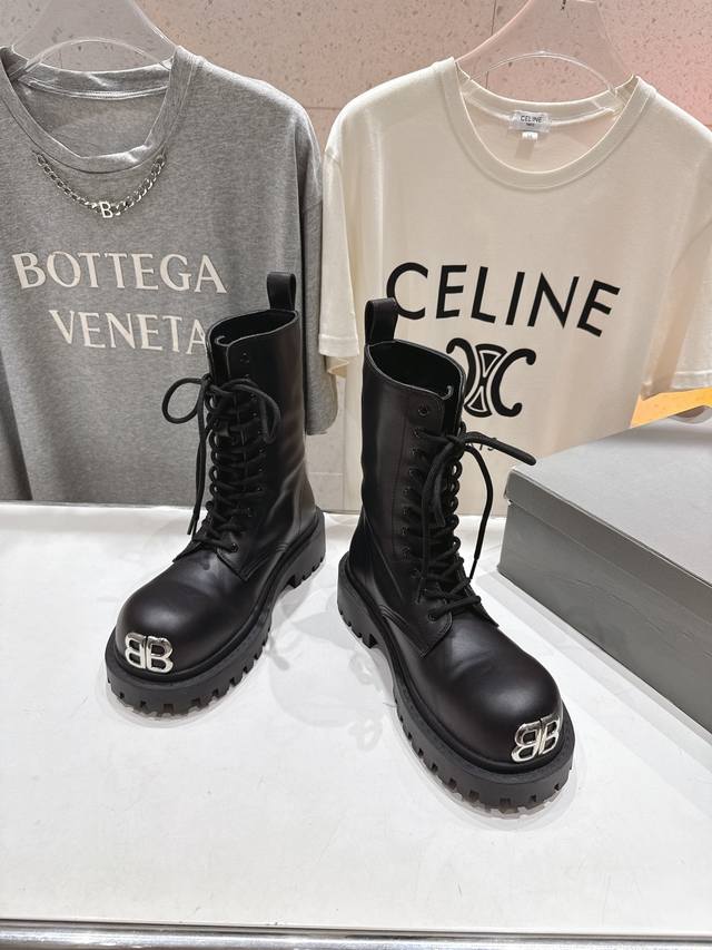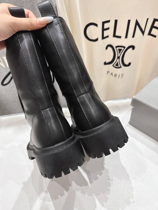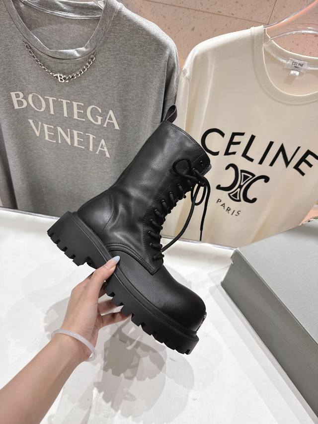 Balenciag* Balencia F046 2025Ss autumn and winter new mid-calf lace-up motorcycle boots Martin boots