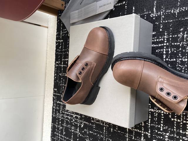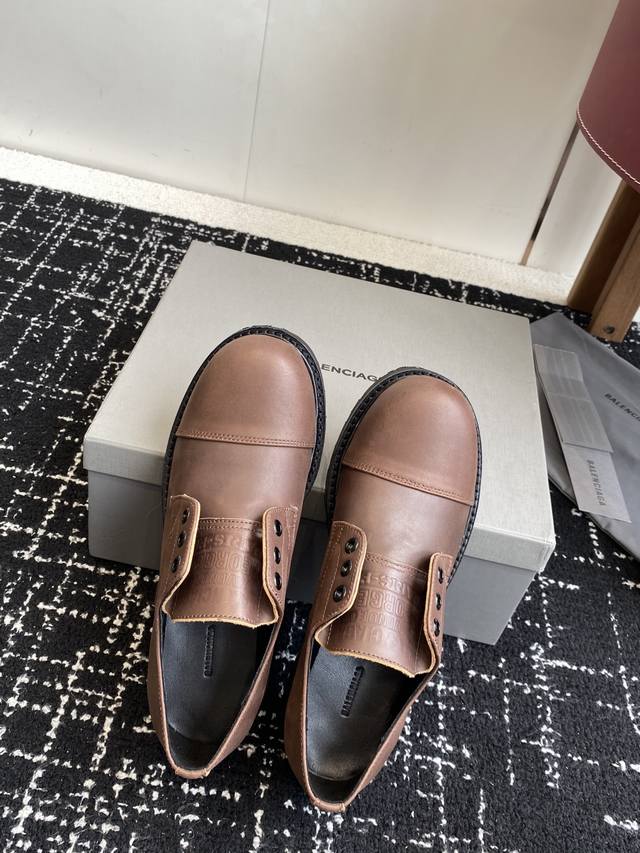 High-quality Balenciaga 25Ss Fall/Winter new style faux lace-up loafers for couples. They look rugged but are comfortable and stylish on the feet. The distressed, vintage-inspired finish adds a touch of personality. The unique design and outsole make these loafers a must-have for any fashionista. A classic and versatile style! Materials: Original top-grain calfskin, imported suede lining, water-dyed cowhide insole, original molded rubber outsole. Sizes: #Women's 34-41 (34, 40, 41), custom orders, no returns. #Men's 38-45, 45, custom orders, no returns.
