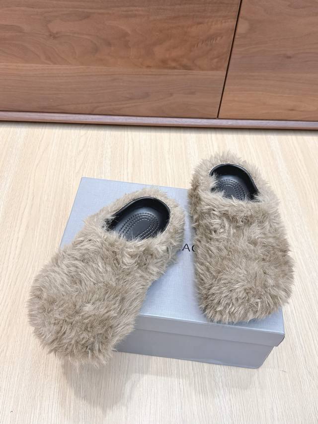 High-quality Balenciaga 25Ss Fall/Winter new thick-soled wool slippers, couple style, lightweight! Endorsed by numerous top domestic and international fashion celebrities! Stylish yet comfortable, and flattering! Perfect for summer! Sizes: 35-36 37-38 39-40 40-41 42-43 44-45 (Same sizes available)