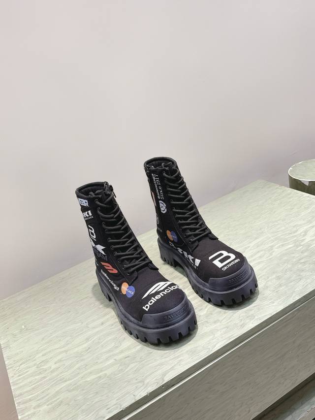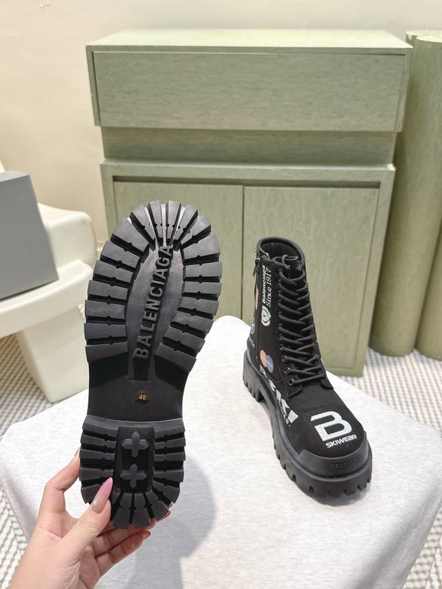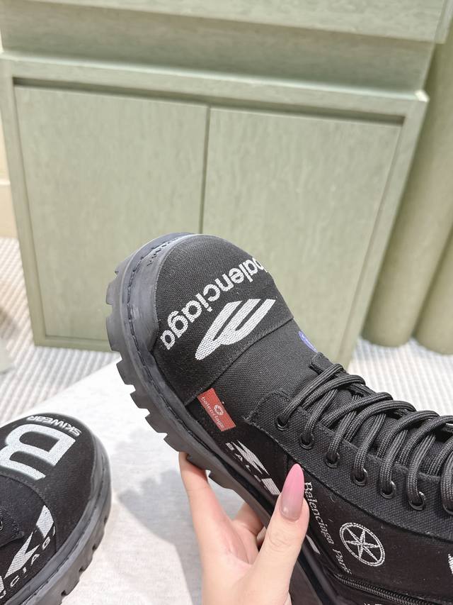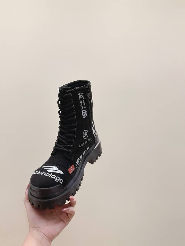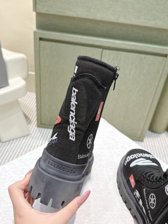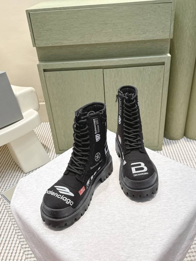 High-quality Balenciaga 25Ss Stomper boots (retailer quality). Purchased from the original manufacturer and developed using the original design. Outsole molded for the sole. Antique distressed finish, work boot style, round toe, ankle boot, side zipper, thick men's sole, serrated original foam outsole, original fabric upper, leather insole, leather lining. Full packaging. Sizes: 39-46 (retailer quality).