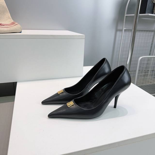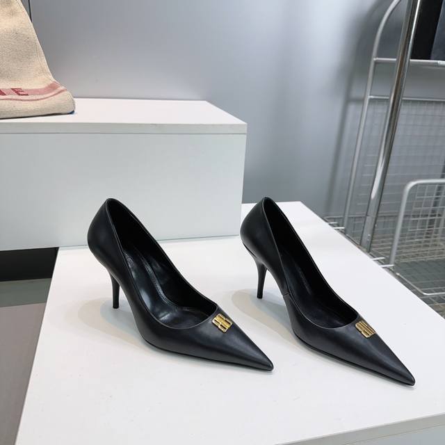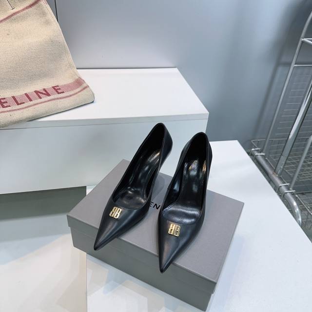 High-quality factory direct! Balenciaga Spring/Summer 2026 new Bb buckle pointed toe high heels with metal buckle embellishments, open-back sandals, single shoes series. Original purchase and development! Classic Balenciaga's unique fashion charm, super stylish on the feet!! Perfect for autumn and winter outfits. Upper made of imported mixed sheepskin. Sheepskin lining and insole. Authentic development. Italian imported genuine leather outsole! Heel height: 8.5cm. Sizes: 35-42, 40, 41, 42. Custom orders are non-refundable and non-exchangeable. Comes with original packaging.