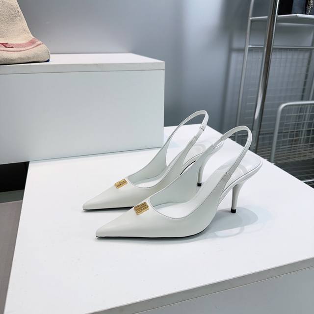 High-quality factory direct! Balenciaga Spring/Summer 2026 new Bb buckle pointed toe high heels with metal buckle embellishments, open-back sandals, single shoes series. Original purchase and development! Classic Balenciaga's unique fashion charm, super stylish on the feet!! Perfect for autumn and winter outfits. Upper made of imported mixed sheepskin. Sheepskin lining and insole. Authentic development. Italian imported genuine leather outsole! Heel height: 8.5cm. Sizes: 35-42, 40, 41, 42. Custom orders are non-refundable and non-exchangeable. Comes with original packaging.