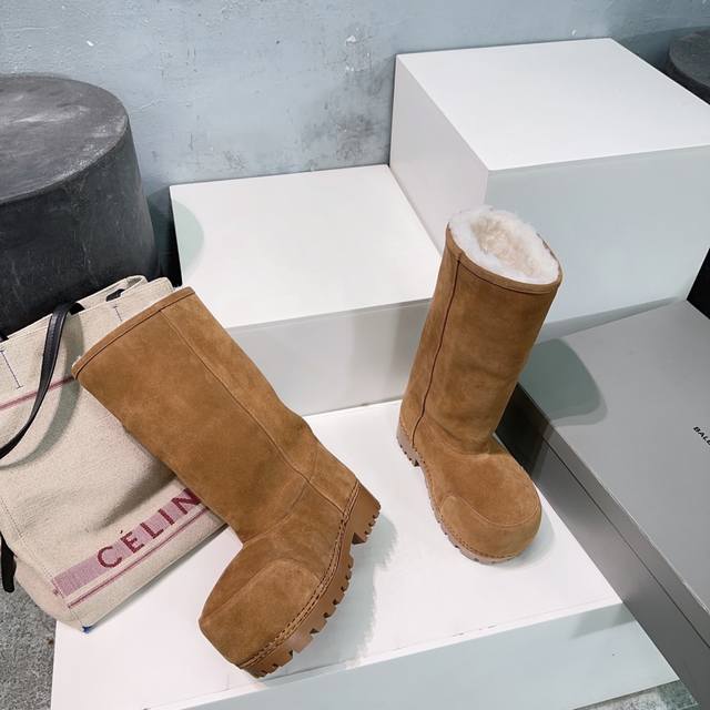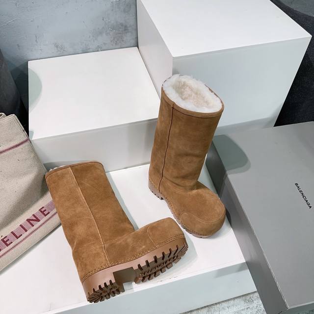 High-quality factory direct! Top-quality couple's style! Balenciaga 25SS Fall/Winter new snow boots, ski series, high-top platform thick-soled warm big-toe boots!