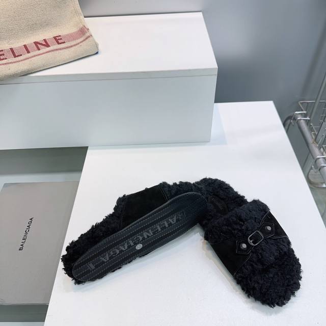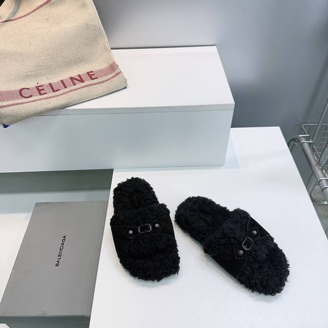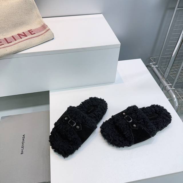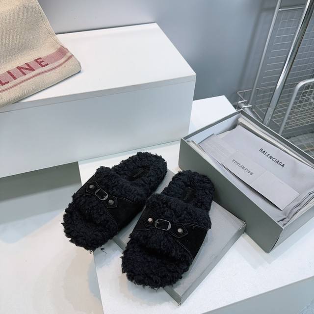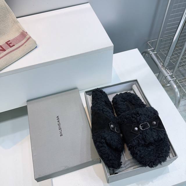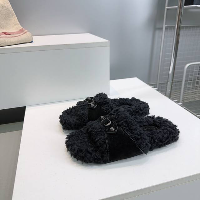 High-quality factory release! Top-quality Balenciaga 25Ss Fall/Winter latest warm lamb wool studded punk style flat casual fur slippers! A must-have for winter, loved by fashion bloggers and European and American celebrities. Stylish yet understated. Imported high-gloss cowhide upper, genuine wool lining, exceptionally fluffy, soft, and skin-friendly for exceptional comfort. Exquisite hand-stitched details. Logo embellishment on the insole for a high-end feel. Upper made of cow suede. Insole made of imported curly sheep wool. Original rubber non-slip and wear-resistant sole. Sizes: 35-40. Size 40 is custom-made and non-refundable. Comes with original packaging.