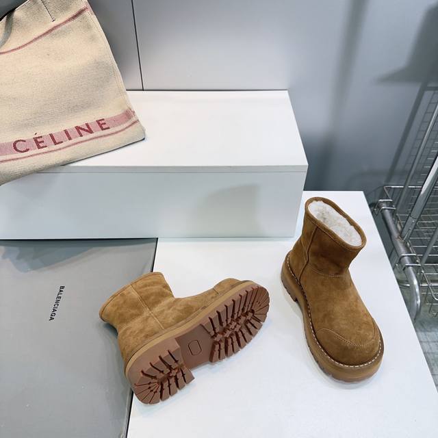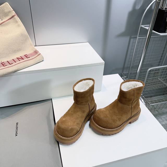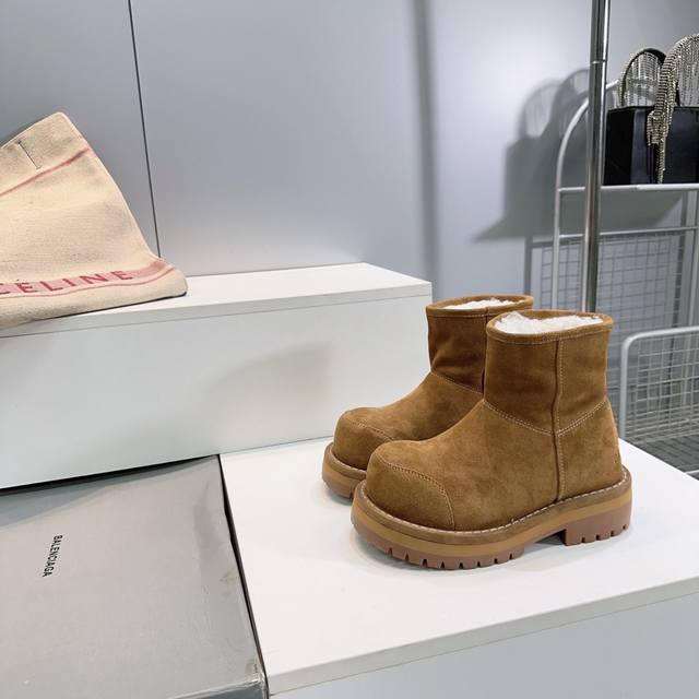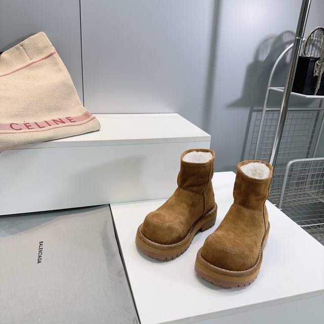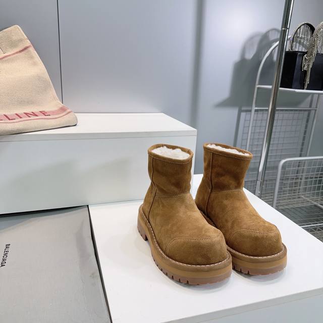 High-quality factory shorts! Top-quality Balenciaga 25Ss new autumn/winter snow boots from the ski collection, high platform boots with thick soles and warm, wide-toed boots!