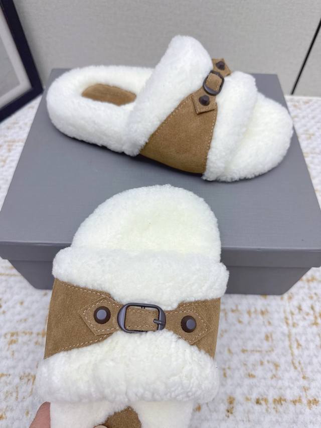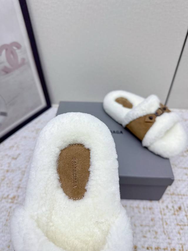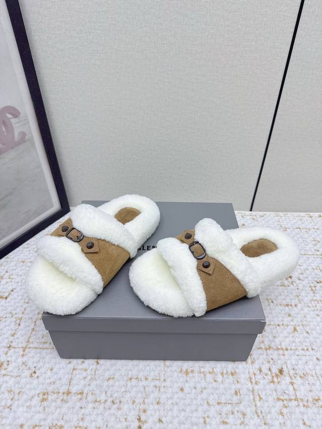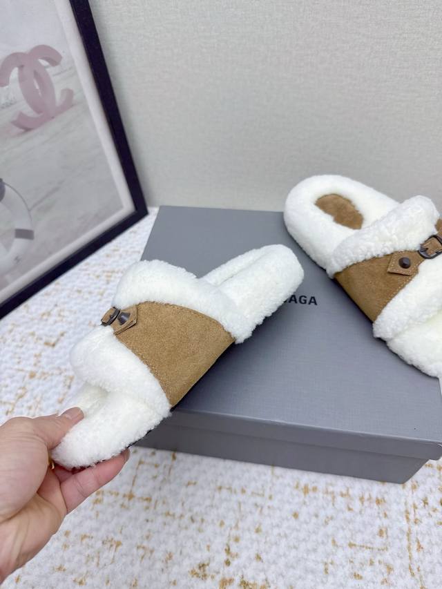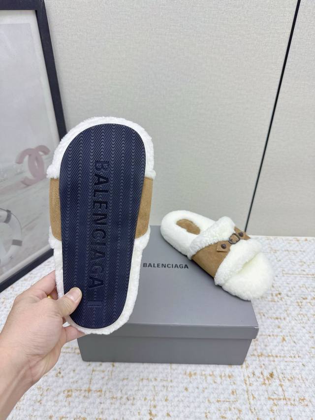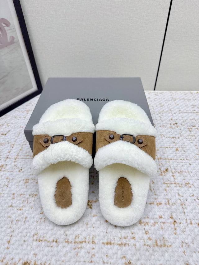 High-quality factory version DDD Balenciaga 25 Fw Fall/Winter new wool slippers Classic buckle studded wool slippers DDD This ingenious design features straps and elements as highlights, not only providing a secure fit but also allowing for adjustable tightness. The brand's signature distressed hardware is present throughout, subtly creating a vintage wear effect that showcases individuality. The thick, serrated rubber sole ensures comfort while enhancing the overall style and recognizability. Undoubtedly a must-have fashion item this season, it will add a unique charm to fashion lovers' outfits and lead a new wave of trends. DDD Material: Suede DDD Lining: Wool DDD Outsole: Molded rubber outsole DDD Size: #35-40 40 is custom-made and non-refundable DDD