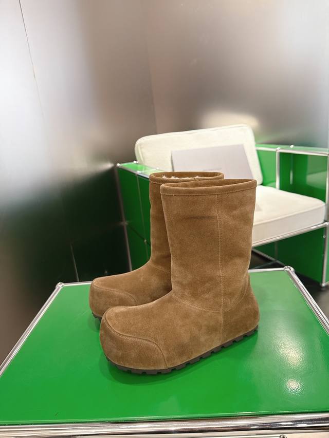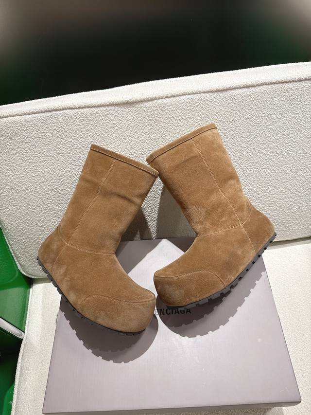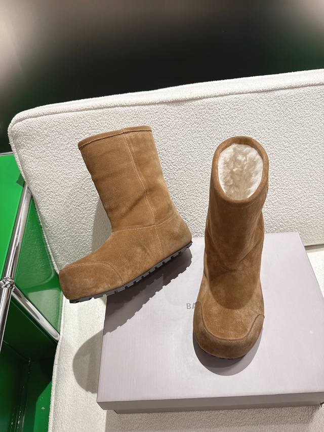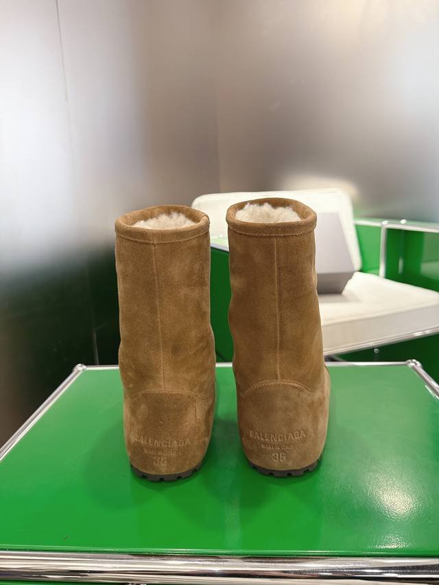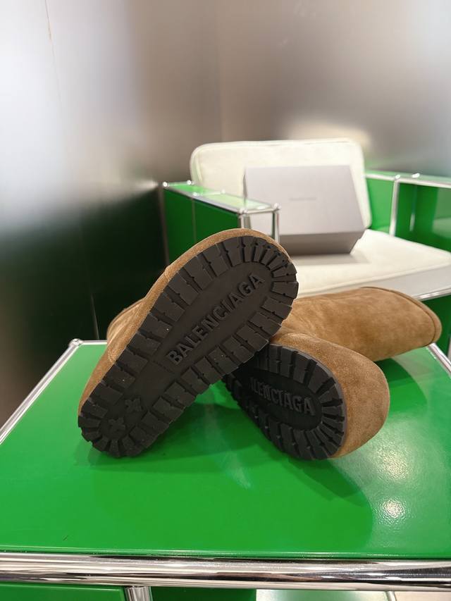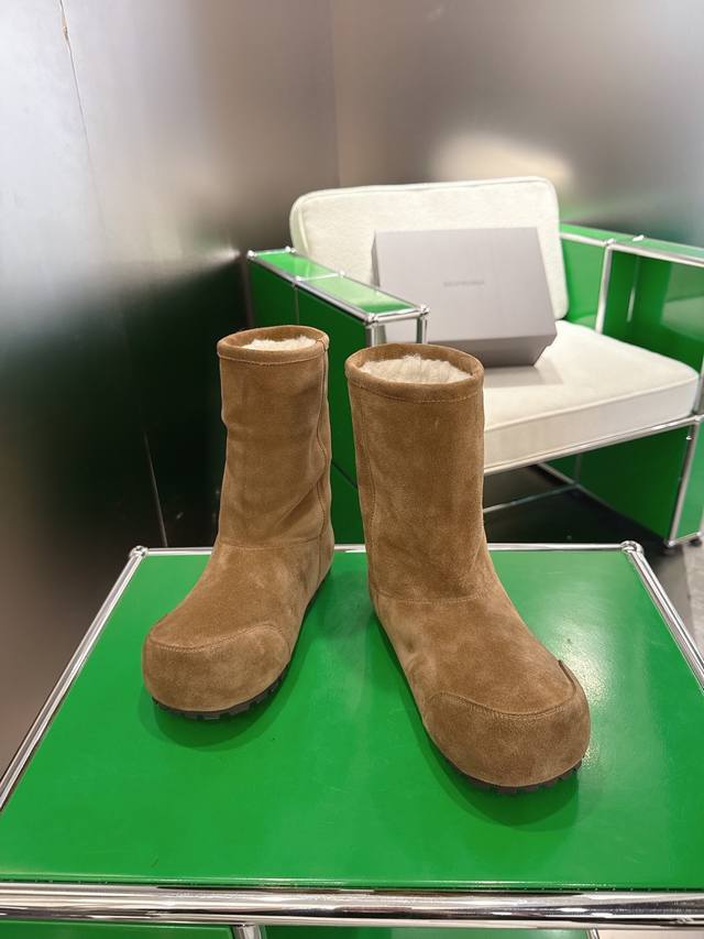 K018 Balenciaga 2025 Fall/Winter New Mid-Calf Pure Wool Snow Boots DDD Absolutely stunning! The design is full of style, breaking away from the traditional dullness and bulkiness of snow boots. They're incredibly unique and perfect for autumn and winter, pairing beautifully with sweatpants, jeans, or skinny jeans. DDD The upper is made of silky suede, exuding a delicate and luxurious feel. The entire lining is made of pure wool for warmth and comfort. The rubber outsole is non-slip and wear-resistant. DDD Size: 35-40 DDD