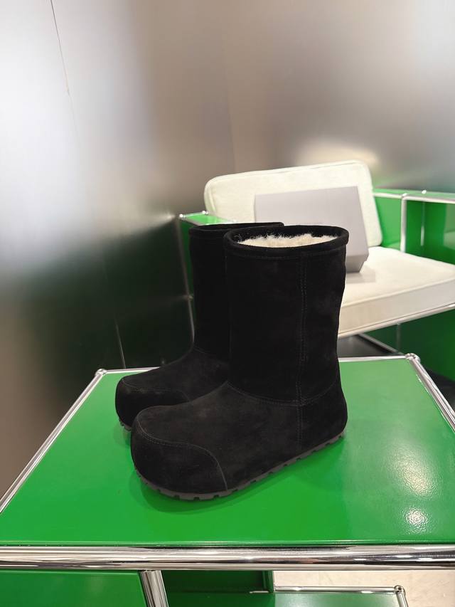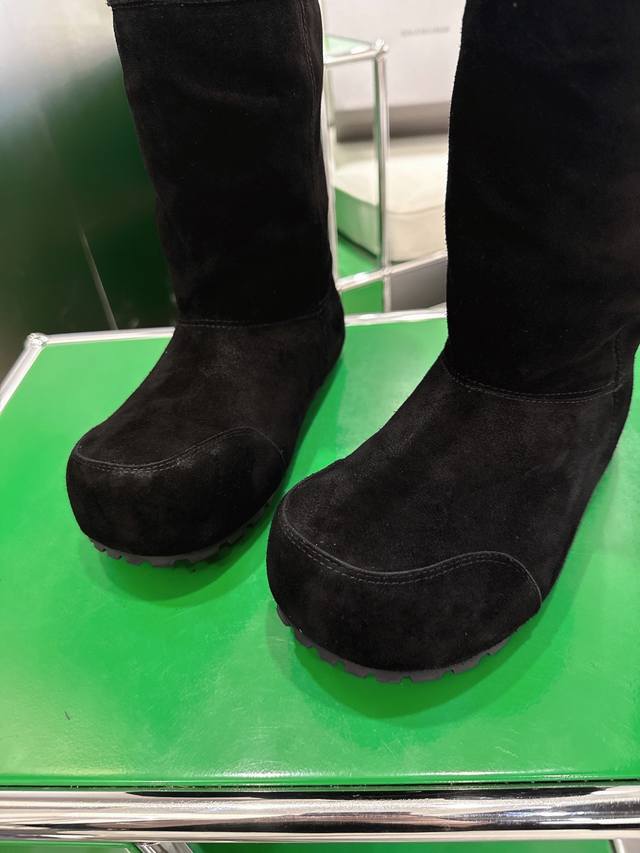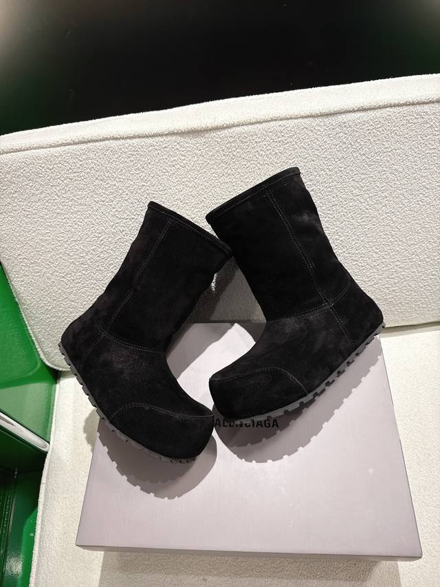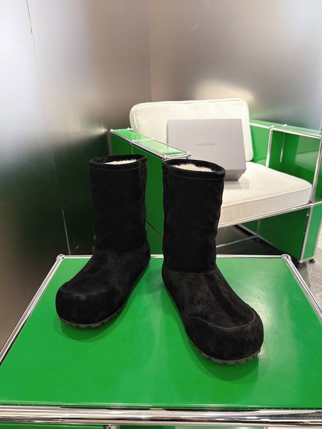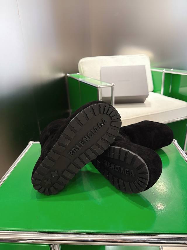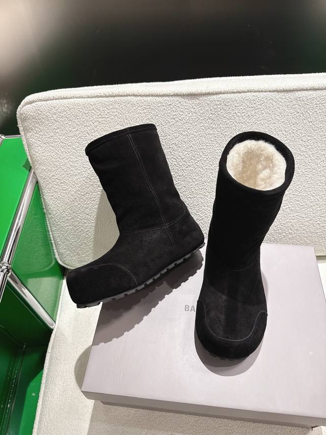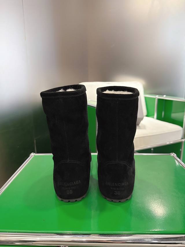 K018 Balenciaga 2025 Fall/Winter New Mid-Calf Pure Wool Snow Boots DDD Absolutely stunning! The design is full of style, breaking away from the traditional dullness and bulkiness of snow boots. They're incredibly unique and perfect for autumn and winter, pairing beautifully with sweatpants, jeans, or skinny jeans. DDD The upper is made of silky suede, exuding a delicate and luxurious feel. The entire lining is made of pure wool for warmth and comfort. The rubber outsole is non-slip and wear-resistant. DDD Size: 35-40 DDD