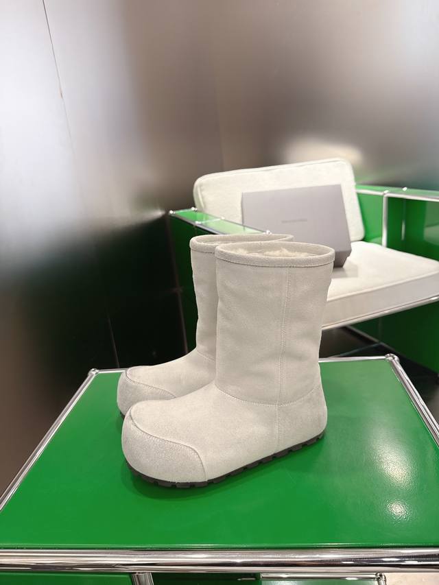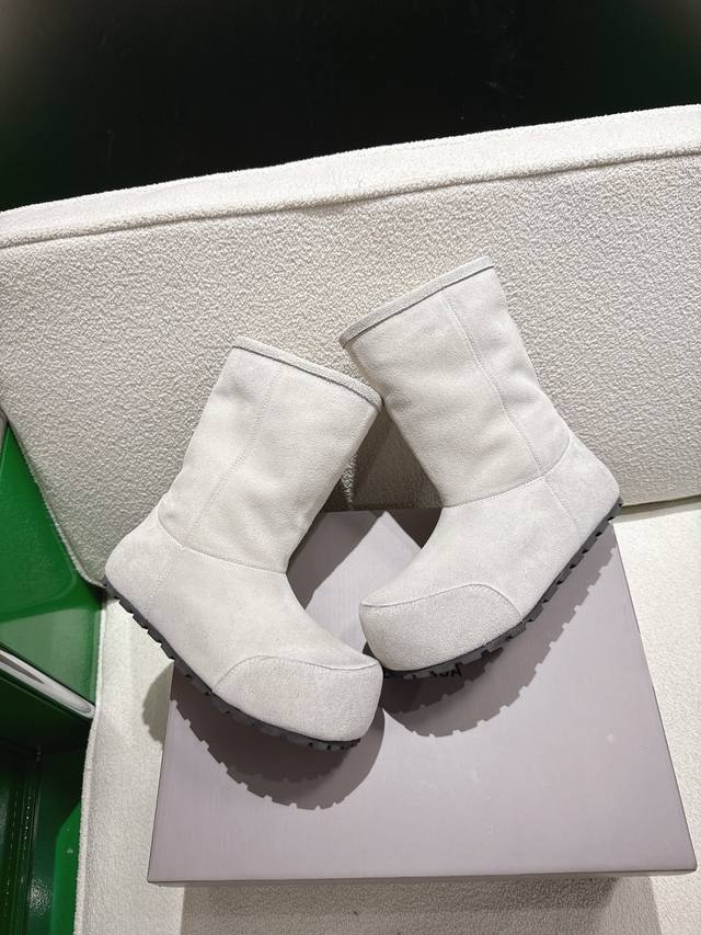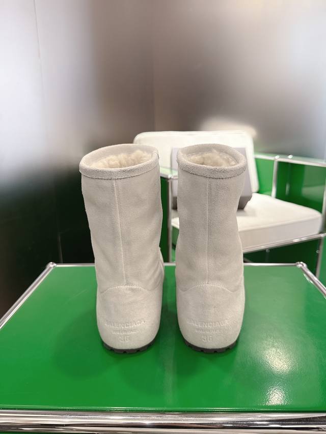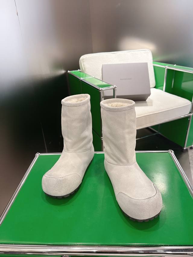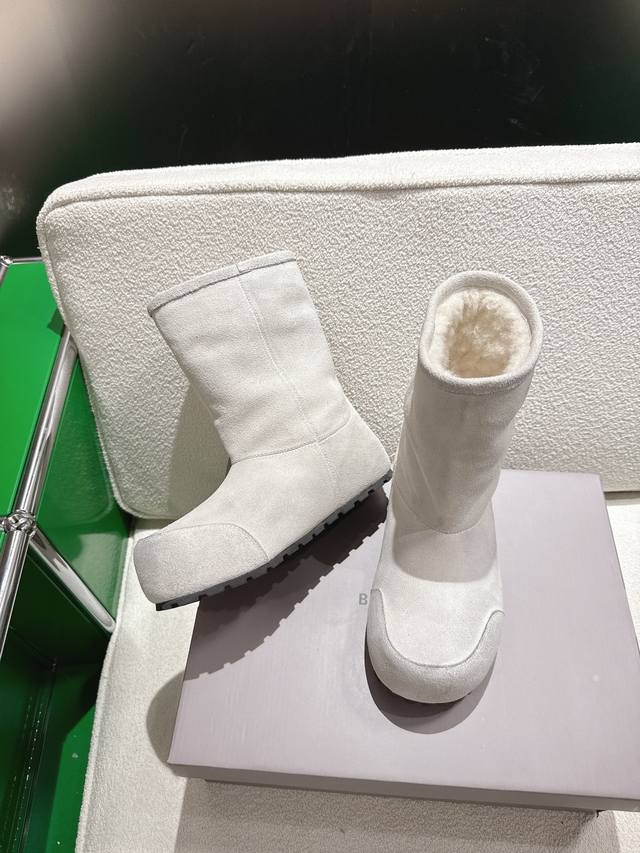 K018 Balenciaga 2025 Fall/Winter New Mid-Calf Pure Wool Snow Boots DDD Absolutely stunning! The design is full of style, breaking away from the traditional dullness and bulkiness of snow boots. They're incredibly unique and perfect for autumn and winter, pairing beautifully with sweatpants, jeans, or skinny jeans. DDD The upper is made of silky suede, exuding a delicate and luxurious feel. The entire lining is made of pure wool for warmth and comfort. The rubber outsole is non-slip and wear-resistant. DDD Size: 35-40 DDD
