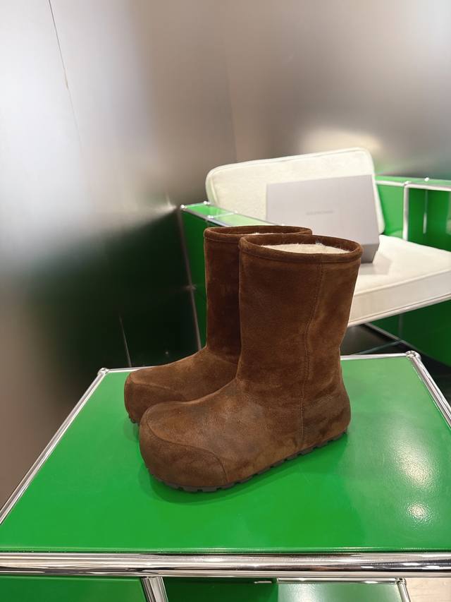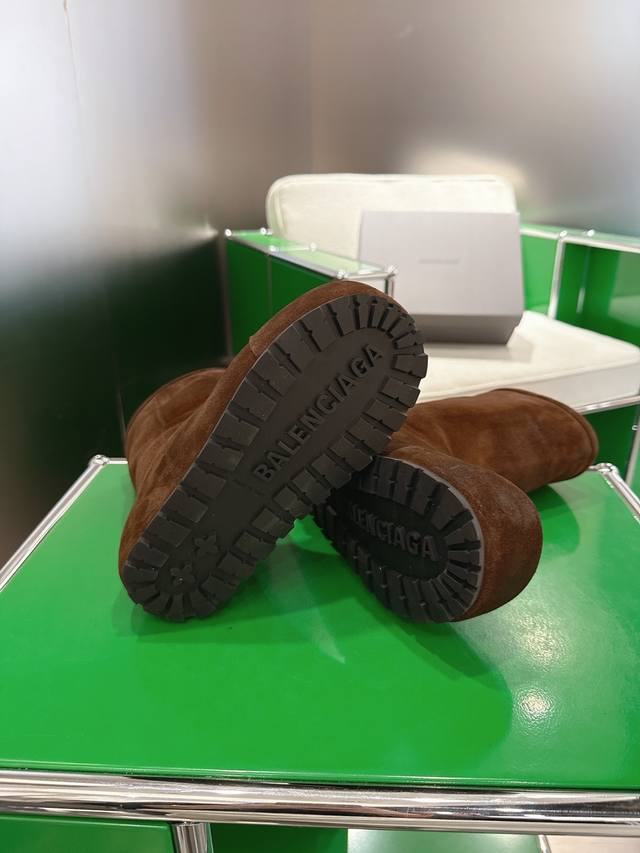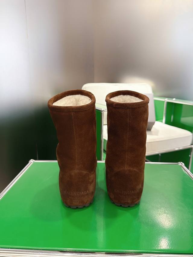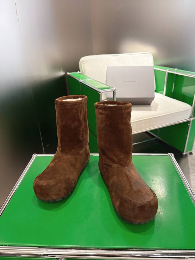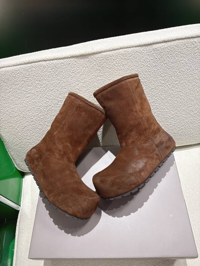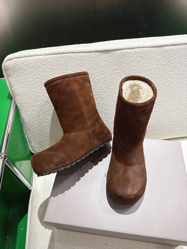 K018 Balenciaga 2025 Fall/Winter New Mid-Calf Pure Wool Snow Boots DDD Absolutely stunning! The design is full of style, breaking away from the traditional dullness and bulkiness of snow boots. They're incredibly unique and perfect for autumn and winter, pairing beautifully with sweatpants, jeans, or skinny jeans. DDD The upper is made of silky suede, exuding a delicate and luxurious feel. The entire lining is made of pure wool for warmth and comfort. The rubber outsole is non-slip and wear-resistant. DDD Size: 35-40 DDD