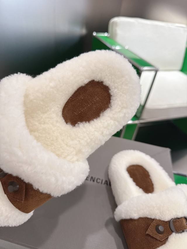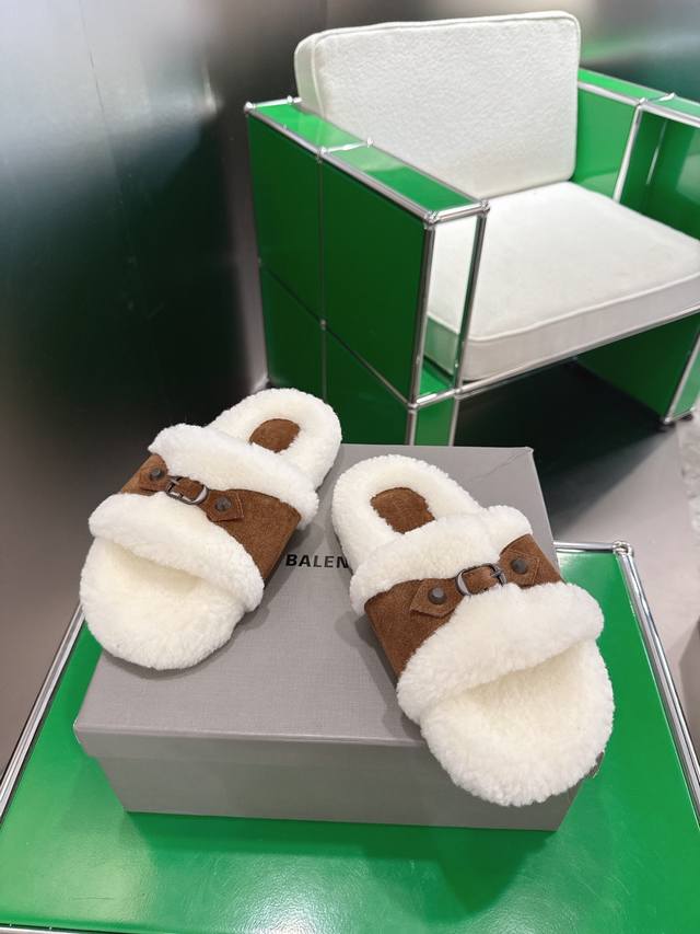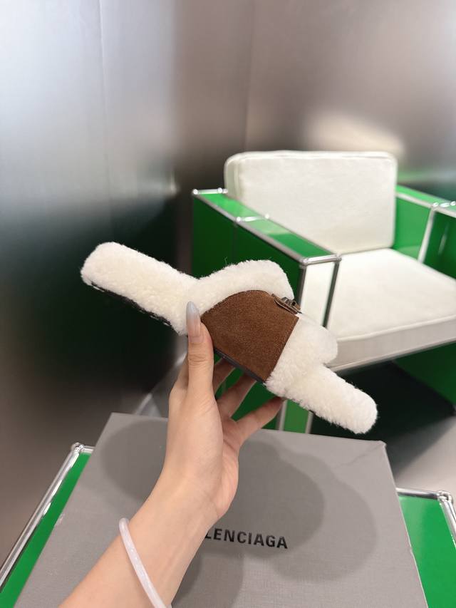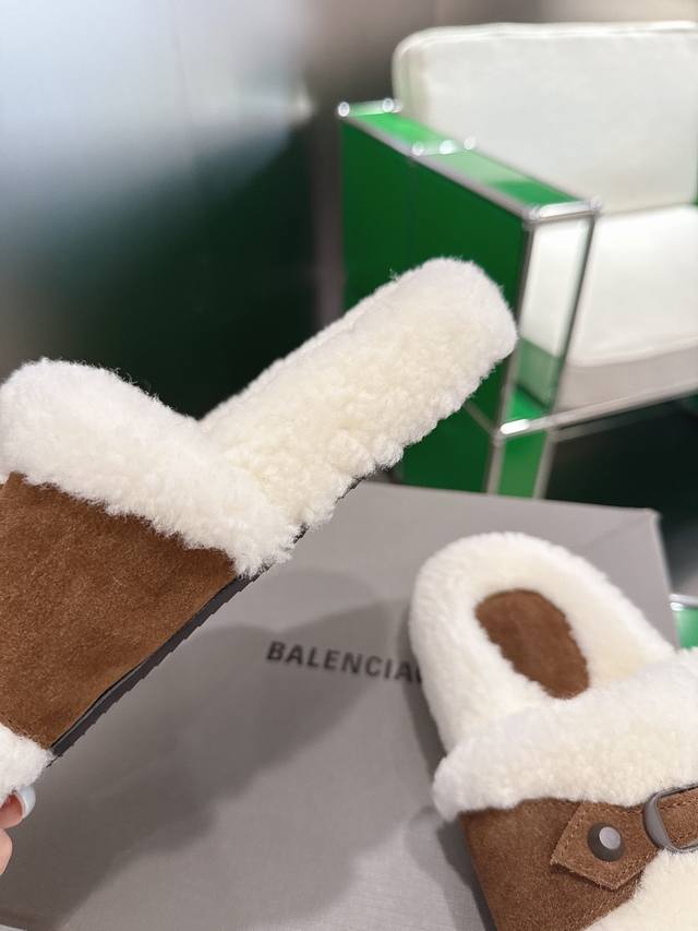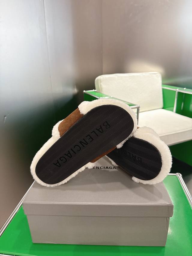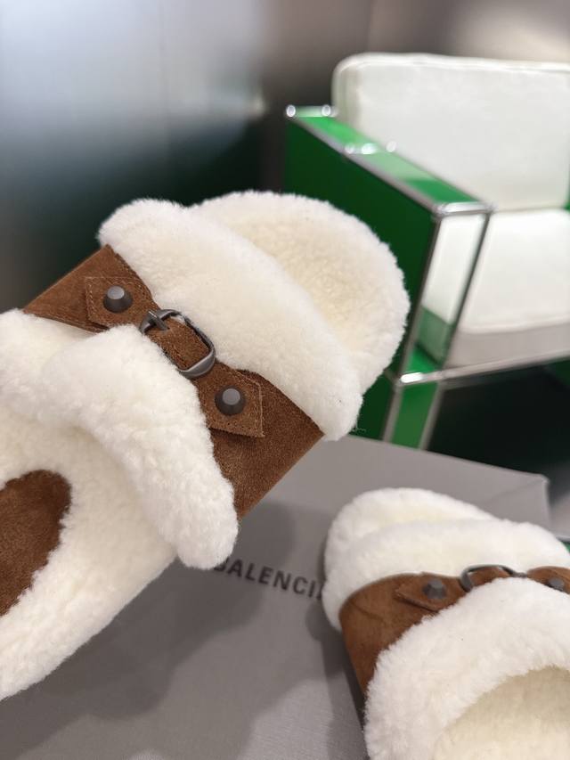 K024 Balenciaga Fall/Winter 2025 New Style Furry Slippers, Trendy Autumn/Winter Balenciaga Furry Slippers, High-End Style, Loved by European and American Socialites, Celebrities, and Influencers, Exquisite Upper Stitching, Fluffy and Soft Against the Skin, Winter Must-Have, Stylish Yet Not Overly Flashy, Material: Cow Suede & Wool, Sole: Original Rubber Non-Slip and Wear-Resistant, Size: 35-39, Size 40 (Made to Order, No Returns or Exchanges).