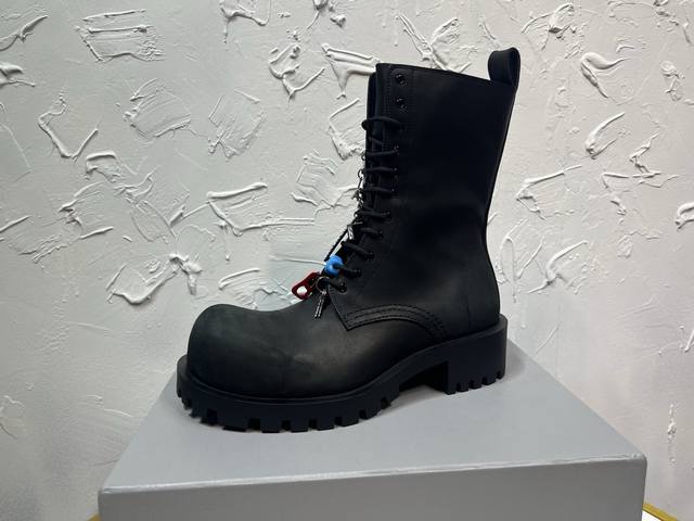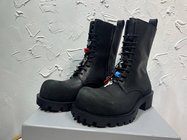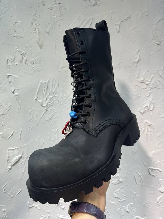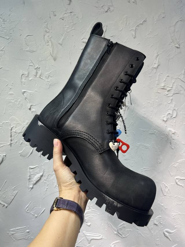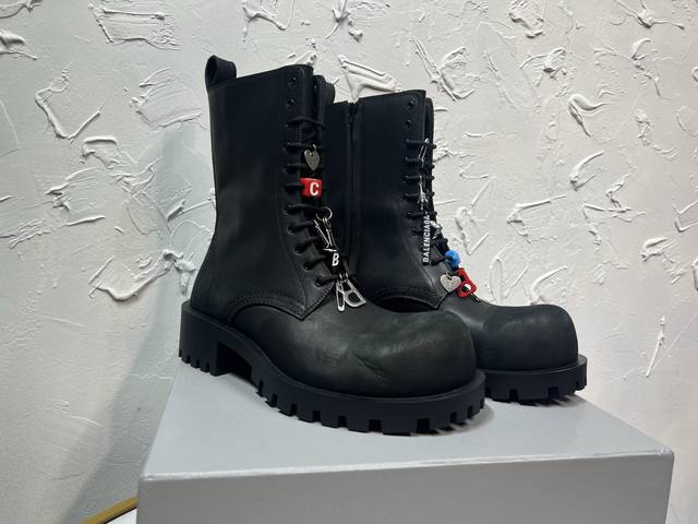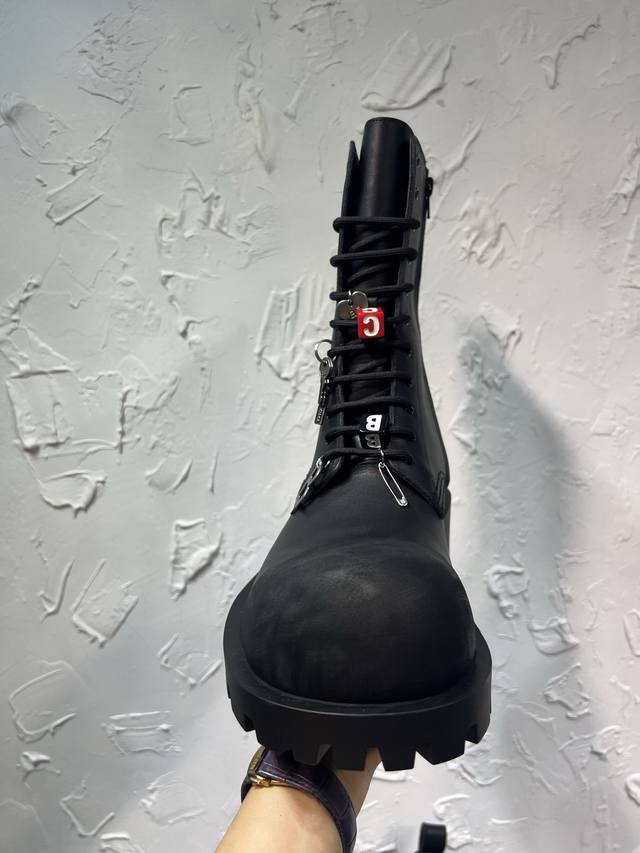 Latest 2025 Balenciaga Hummer Men's Boots, lace-up zipper boots with pendant buckle, slightly asymmetrical round toe, purchased from the original and disassembled, 1:1 replica, outsole 1:1 mold, imported black matte cowhide leather upper, cowhide lining, cowhide insole, original TPU coarse-tooth outsole, original full packaging. Sizes 39-46.