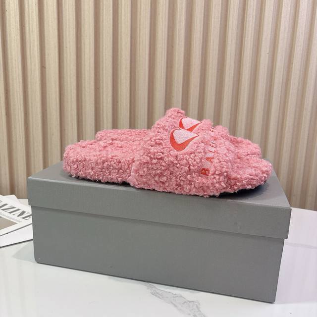 Thin-soled Balenciaga 25Ss autumn/winter trendy wool slippers. Lettering and embroidered logo on the upper! A luxurious feel! Looks especially beautiful on the feet. Fabric: Soft and comfortable sheep wool. Sole: Original non-slip, wear-resistant sole. Sole thickness: 2cm-5cm. Sizes: 34-45 (Women: 34, 40, 41, Men: 39, 45). Custom orders are not refundable.