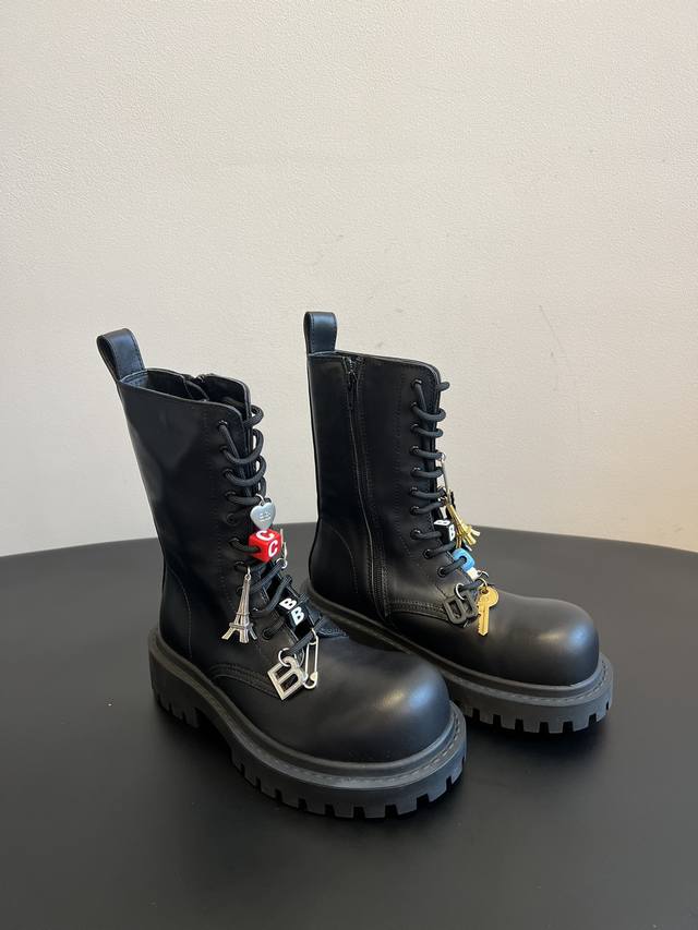Balenciaga 25Ss autumn/winter new lace-up double-B buckle Martin boots