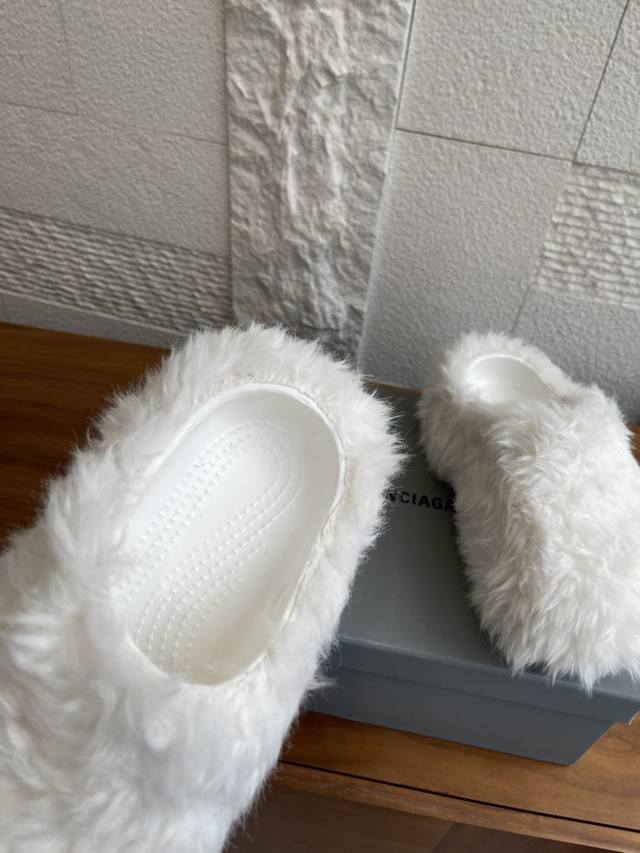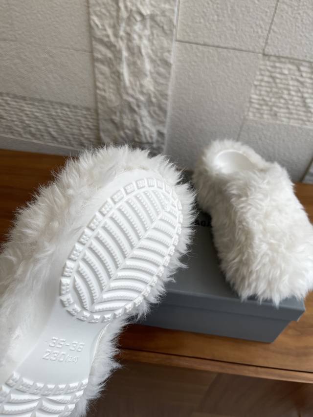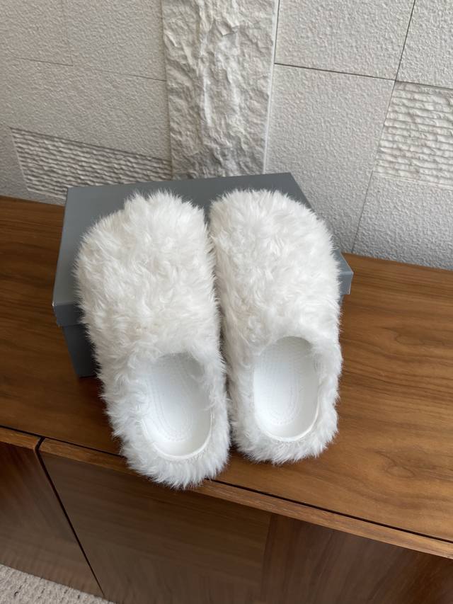Balenciaga and Crocs collaboration mules, featuring an ultra-lightweight faux fur upper! Endorsed by numerous top domestic and international fashion celebrities! Stylish yet comfortable, super versatile for autumn and winter!