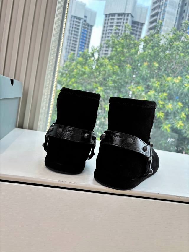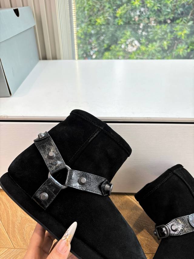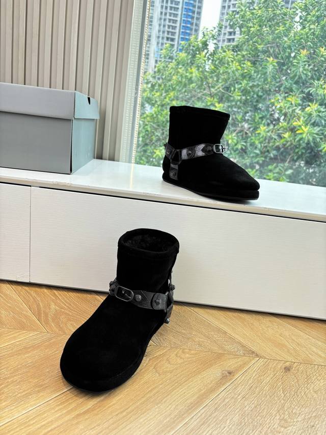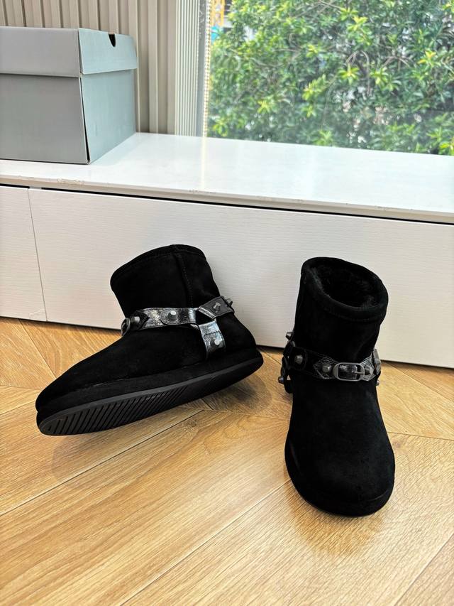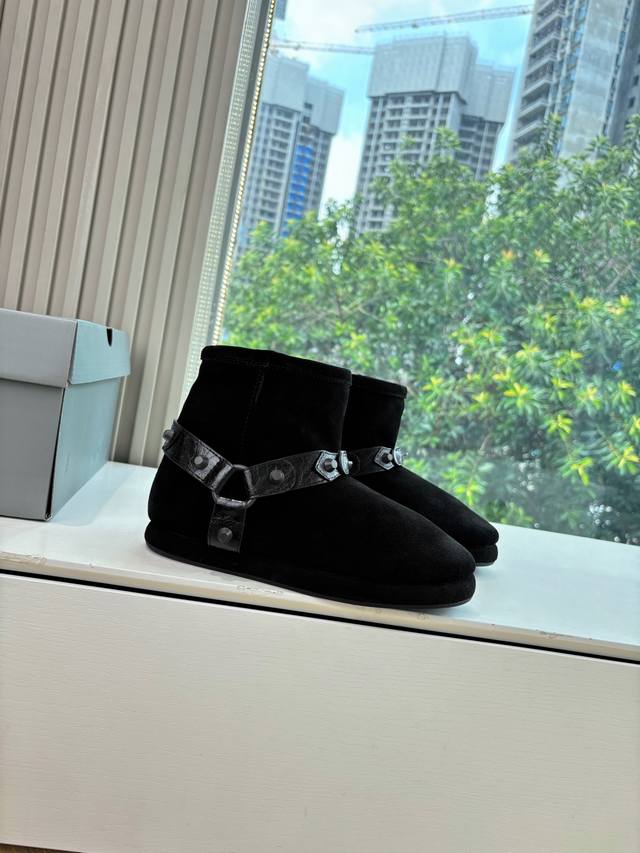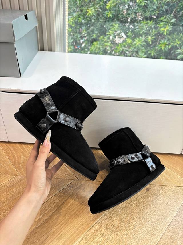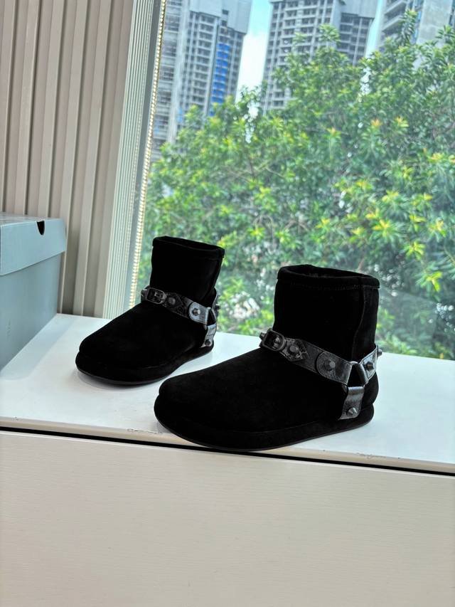 Top-tier factory version, original replica, developed by a proxy buyer. Balenciaga Skiwear latest Alaskan snow boots, couple style. Authentic RMB purchase. Perfectly replicated. Designer explores the fashion world's concepts of originality and appropriation, paying homage to heritage and classics with a new collection. The iconic Balenciaga abstract design breaks with convention, creating a whimsical yet harmonious new creative style. 1:1 replica. Material: Original suede leather. Outsole: Original molded sole. Sizes: Women's 35-40. Size 40 is non-refundable and non-exchangeable.