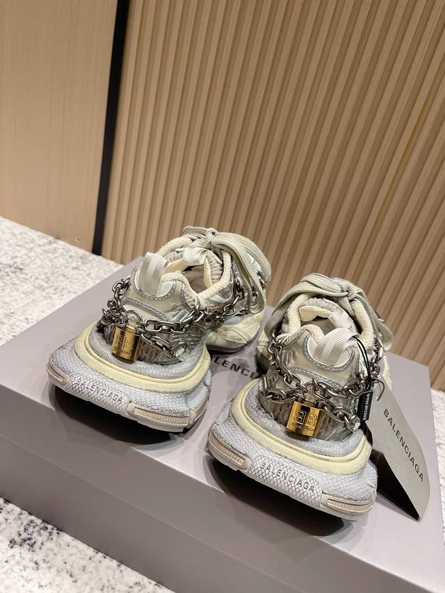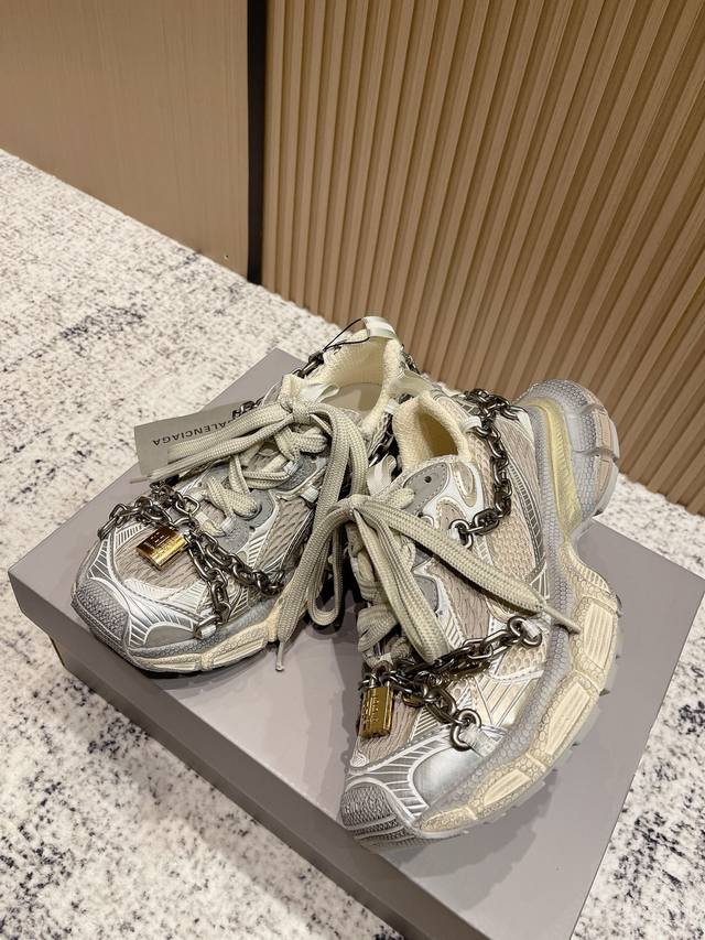 #225 / Balenciaga 3XL and Urnner buckle dad shoes are now available. Continuing the trend of distressed dad shoes, the upper is made of polyester, nylon, TPU, and polyurethane, taking both appearance and comfort to a new level. It features a webbing gusset at the heel, Balenciaga logo on the outsole and heel, Unity Sports Icon artwork on the upper, 3B Sports Icon artwork on the tongue, and a fabric lining. You're guaranteed to be satisfied