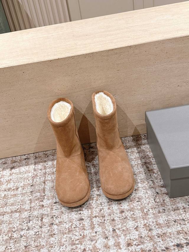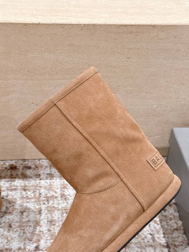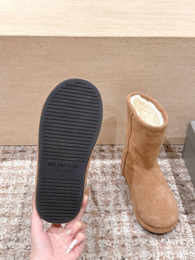Top-tier version: Original replica of Balenciaga Skiwear Alaskan snow boots, purchased for RMB 400. A perfect replica developed from a genuine Balenciaga Skiwear line. The designer explores the concepts of originality and appropriation in the fashion world, paying homage to heritage and classics with a new collection. The iconic Balenciaga abstract design breaks with convention, creating a humorous yet harmonious new creative work. 1:1 replica. Material: Original suede leather. Outsole: Original molded sole. Sizes: Women's 35-40. Size 40 is non-refundable and non-exchangeable.