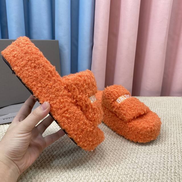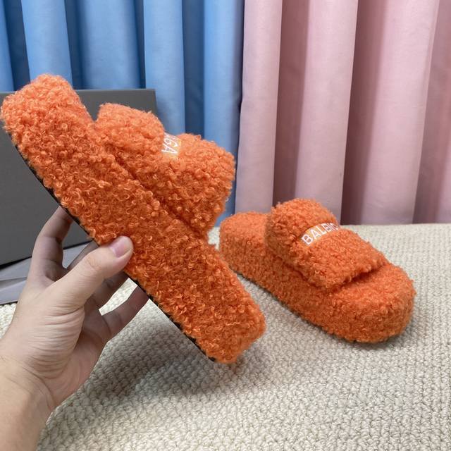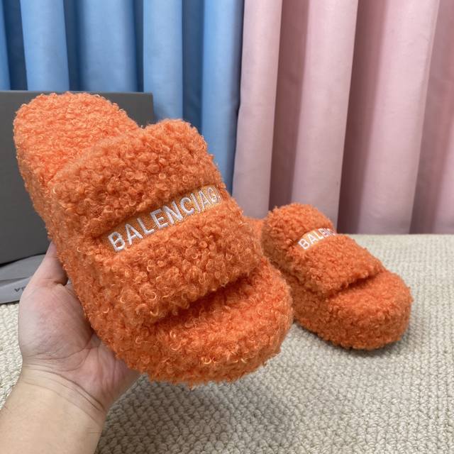 Top-tier version with thick sole and genuine wool! New color! Balenciag trendy wool slippers! Latest political campaign logo embroidery! Exuding luxury! A favorite among European and American socialites, celebrities, and influencers. Exquisite upper with hand-stitched seams, fluffy, soft, and skin-friendly. A winter essential, stylish yet understated! Full sheepskin insole! Not the fake wool found elsewhere! Original molded rubber outsole, non-slip and wear-resistant! Sizes: 35-40, 41. Custom orders are non-refundable and non-exchangeable. Comes with original packaging from the boutique.