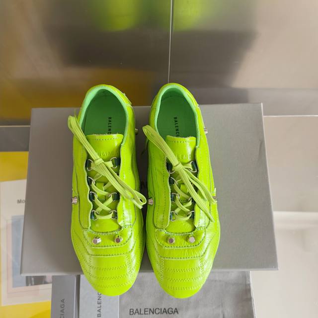 Top-tier version: Women's Balenciaga City series studded training shoes, casual sports shoes, soccer shoes. This soccer shoe perfectly transitions from sporty to urban styles. Full of leather and studded details. Comes with exquisite boutique packaging . Material: Original custom imported top-grain cowhide. Lining: Custom imported breathable mesh. Outsole: Original molded anti-slip rubber material. Sole thickness: 1cm. Size: Women's 34-40.