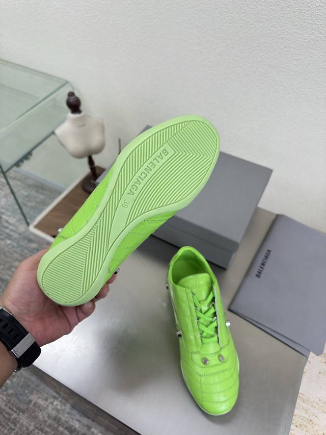 Unisex Balenciag Exclusive DDD Pleated Cowhide Studded Sneakers DDD Green DDD Pleated Cowhide Outer Material DDD Lambskin Lining DDD Top-Tier Version with All Materials Matched DDD Continuing Demna's Rebellious Attitude Against Mainstream Glamorous Fashion DDD Translucent Dyeing Process DDD Large Logo DDD Special Heel Design with Family Logo DDD Original Rubber Molded Sole DDD Sizes Women's 35 36 37 38 39 40 41 DDD Men's 39 40 41 42 43 44 45 DDD Women's 40 41 Men's 45 Custom Made, No Returns or Exchanges DDD Comes with Original Packaging DDD