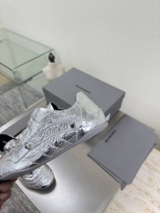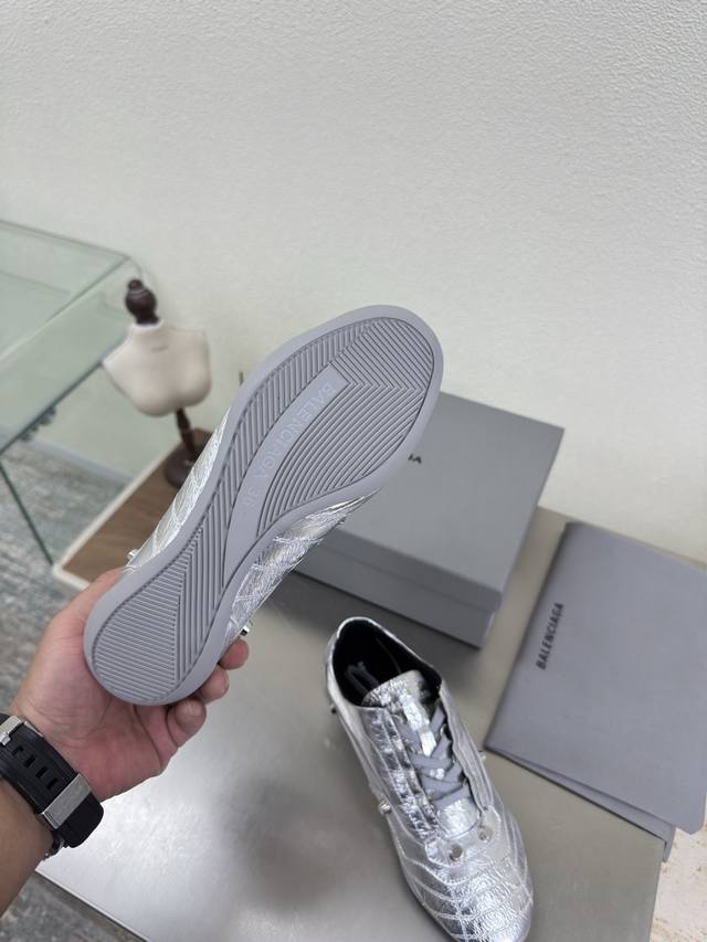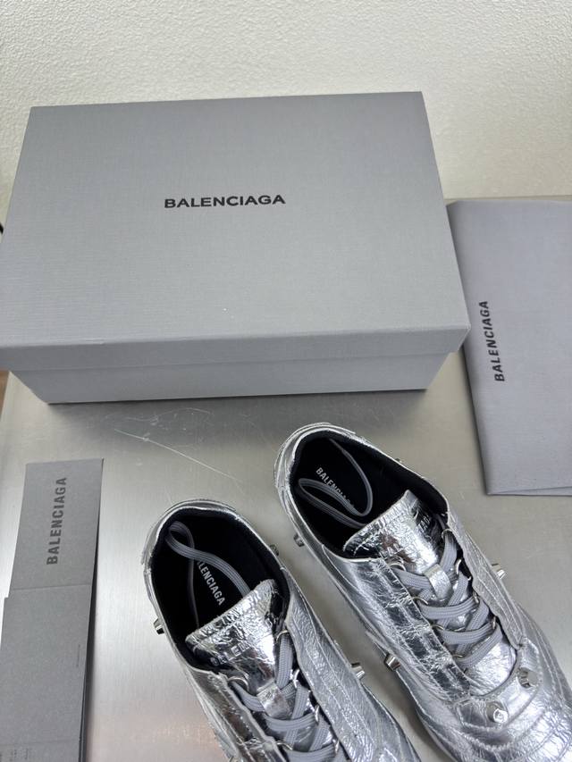Unisex Balenciag Exclusive DDD Pleated Cowhide Studded Sneakers DDD Silver DDD Pleated Cowhide Outer Material DDD Lambskin Lining DDD Top-Tier Version with All Materials Matched DDD Continuing Demna's Rebellious Attitude Against Mainstream Glamorous Fashion DDD Translucent Dyeing Process DDD Large Logo DDD Special Heel Design with Family Logo DDD Original Rubber Molded Sole DDD Sizes Women's 35 36 37 38 39 40 41 DDD Men's 39 40 41 42 43 44 45 DDD Women's 40 41 Men's 45 Custom Made, No Returns or Exchanges DDD Comes with Original Packaging DDD