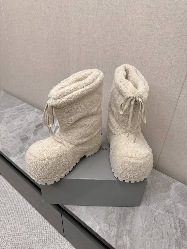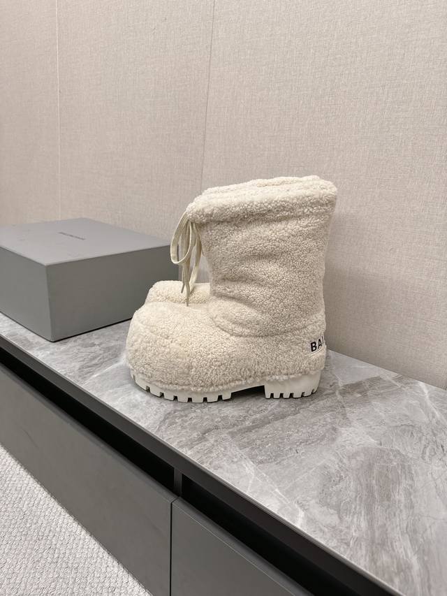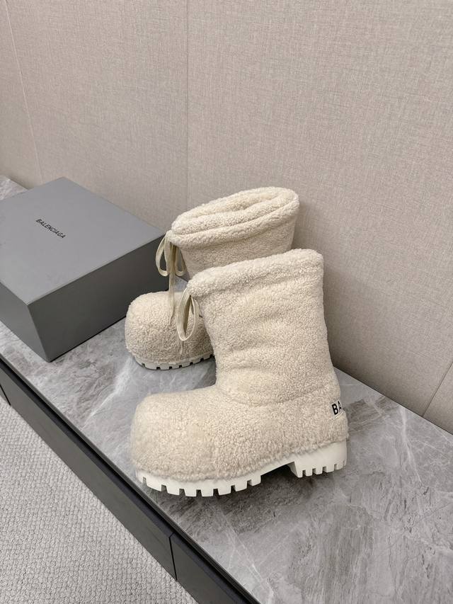 Balenciaga Skiwear latest couple Alaskan snow boots, authentic, purchased for RMB 12,510. A perfect replica developed by the designer, exploring the fashion world's concepts of originality and appropriation. This new collection pays homage to heritage and classics, breaking away from conventional designs with iconic Balenciaga abstraction to create a whimsical yet harmonious new creative style. 1:1 replica construction, all materials are genuine lambskin, double-layered upper, exclusive molded outsole, authentic complete packaging. Sizes: Women's 35-40, Men's 39-46. (DDD)
