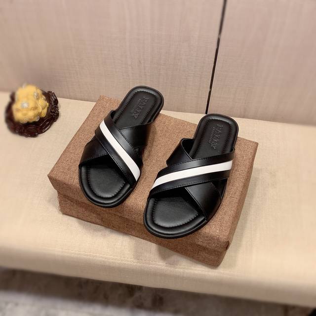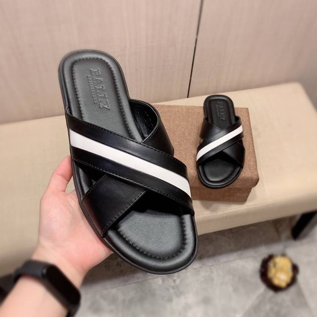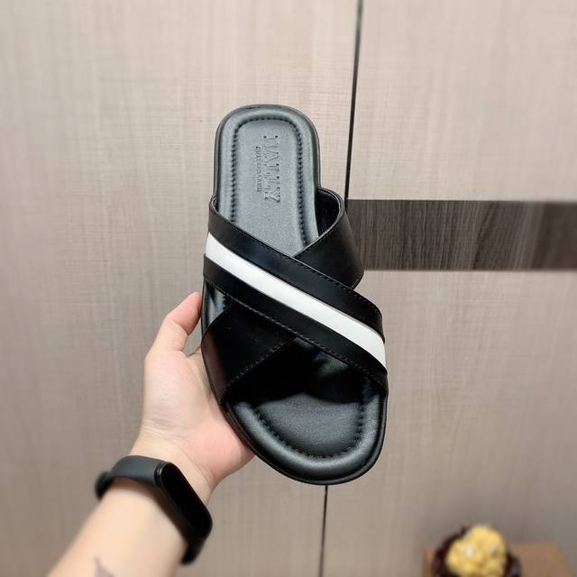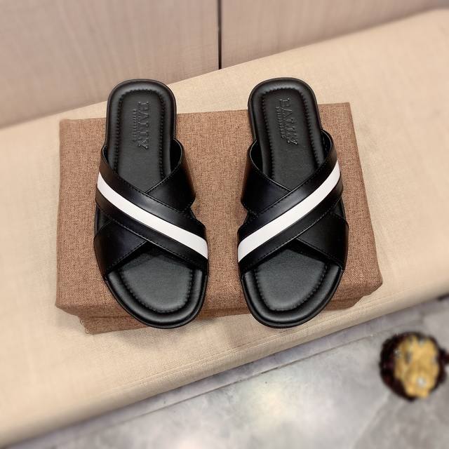 Factory price men's sports shoes original single slippers: New: Bally* series slippers top purchasing men's 2025 counter simultaneous sale, Italian imported original selected cowhide, exquisite workmanship, sole: super comfortable original factory special original sole, exclusive double-layer movable molding sole super comfortable, real shot real more beautiful original single quality, can freely enter and exit the counter, true size 38-44, can order 45. Long-term stock 266