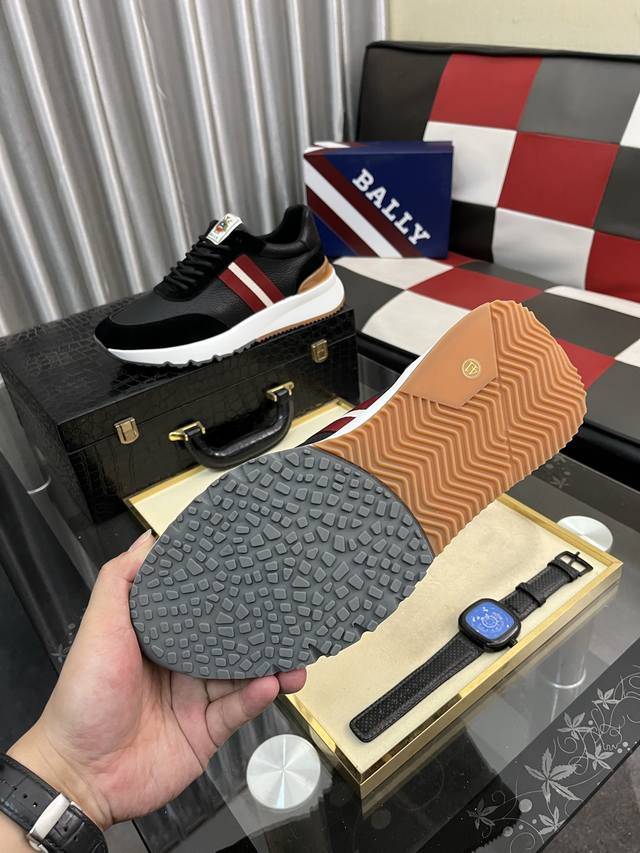 Factory Price (pp): Bally's new casual shoes, crafted from calfskin, blending elegance with innovative design. The brand logo on the lateral outsole adds a modern touch, while the tongue features the brand's initials, all embodying the brand's style! Lambskin lining, custom-molded rubber outsole! Soft, lightweight, comfortable, and stylish! Comes with original box and dust bag! Sizes: 38-444. Colors available.