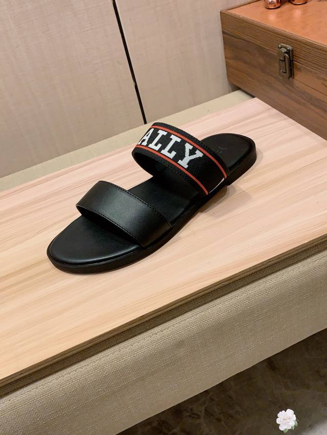 Slippers: New: Factory price Bally* series slippers, top purchasing agent for men, sold simultaneously, imported from Italy, original selected cowhide with webbing, exquisite workmanship, sole: super comfortable original factory special sole, exclusive double-layer movable molded sole, super comfortable, real photos are more beautiful in real life 266 size 38-45