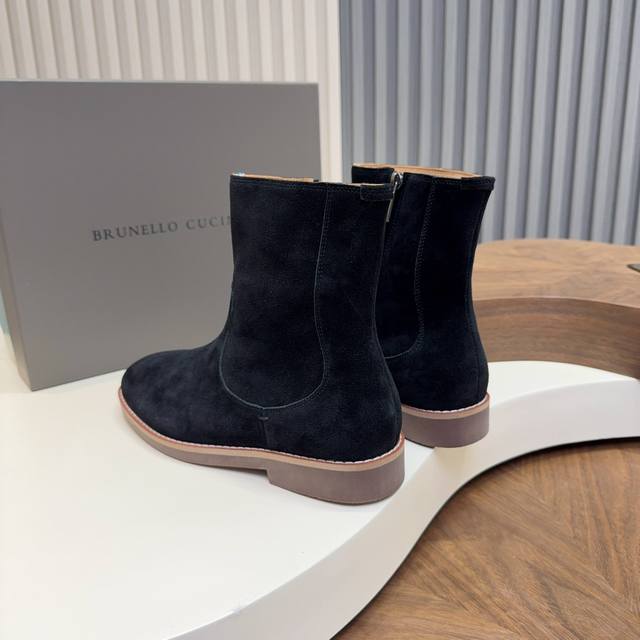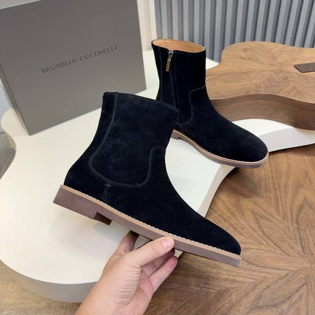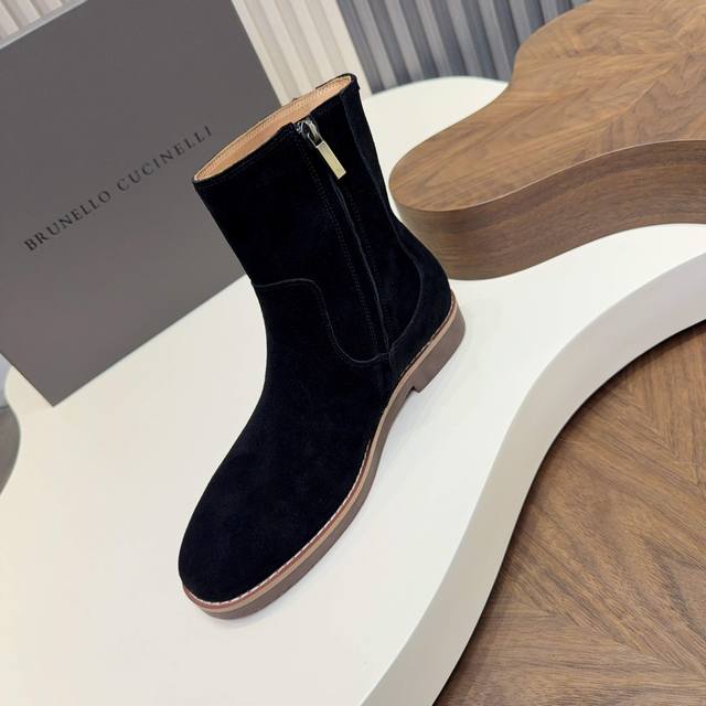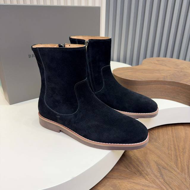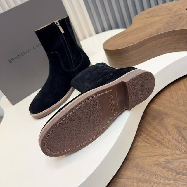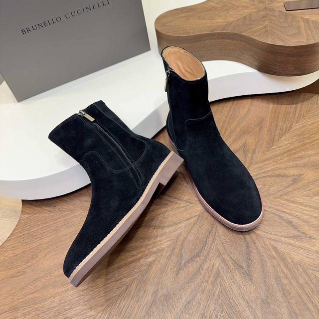 2025 Brunello Cucinelli Suede Chelsea Boots are made with high-quality top-grain calfskin, soft and delicate, with a superb texture. The classic elastic side design makes them super easy to put on and take off, conforming to the foot shape for comfort and style. The thickened rubber sole is non-slip and wear-resistant, making them perfect for autumn and winter wear. The warm brown color is understated and versatile, easily matching jeans and dress pants, suitable for both business and casual occasions! With Goodyear welt construction, they are durable and textured, a must-have classic item in any wardrobe, always a safe bet.